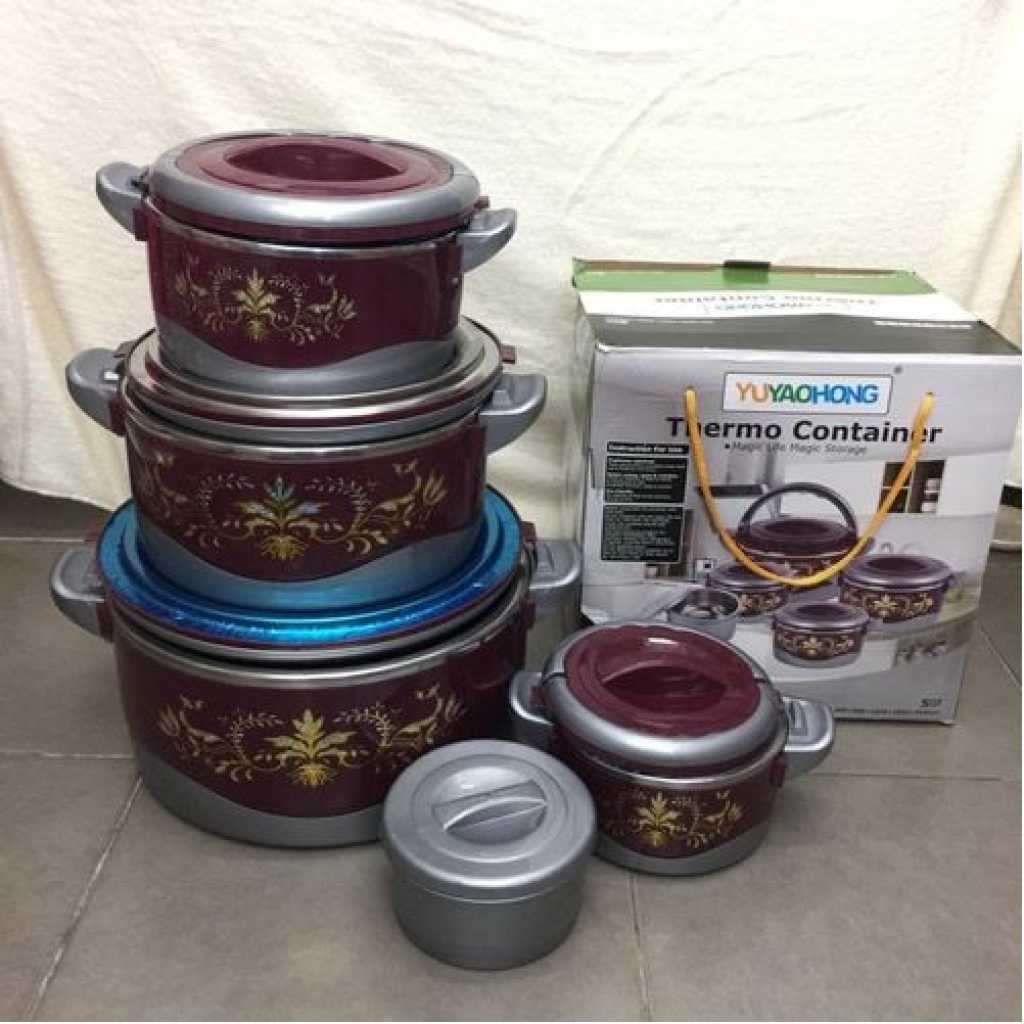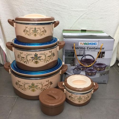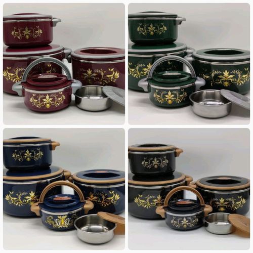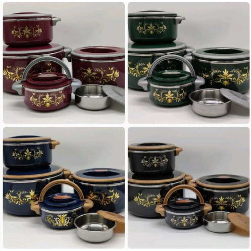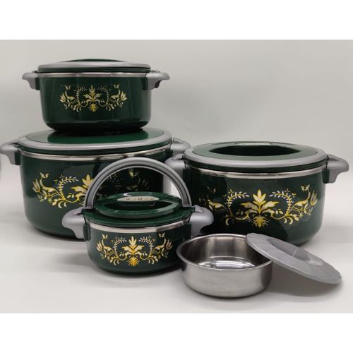 Key Features: 4 Pieces Insulated Hot Pot Dishes Food Warmer Container. Easy to clean food-safe materials – stainless steel inside and plastic outer insulation. Helps retain the temperature (hot or cold) and nutritional value of food for up to 6 hours. Easy to store. Material of plastic. 4 Piece Casseroles.