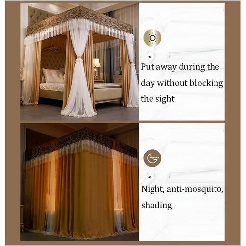 4 Stand Curtain Mosquito Net – blue Beautiful and stylish design: Luxurious Canopy Bed Curtains, More than a simple Bed Curtains, ingenious bed canopy design makes your own bed an artwork, create an atmosphere of elegance and romance for you. Turn your bedroom to a luminous palace and fulfilled your fantasy of princess. ● High Quality Material: The bed curtain is made of high- quality polyester fiber fabric, fine mesh, the bed canopy is soft, providing extra comfort. Canopy Netting with 360 degrees design effectively protecting your sleep. And the fabric is durable, which resists to scratch, lasting long service time. ● Unique design with bed canopy: 4 opening design. It used together with the bed curtain, it can shading and dust-proof. Creative new double layers design! The dustproof and shading effect is good, and the detachable design is suitable for use in all seasons