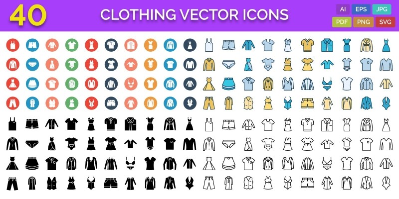 40 Clothing Vector Icons Pack. 40 Clothing Vector Icons Pack
