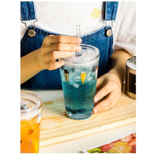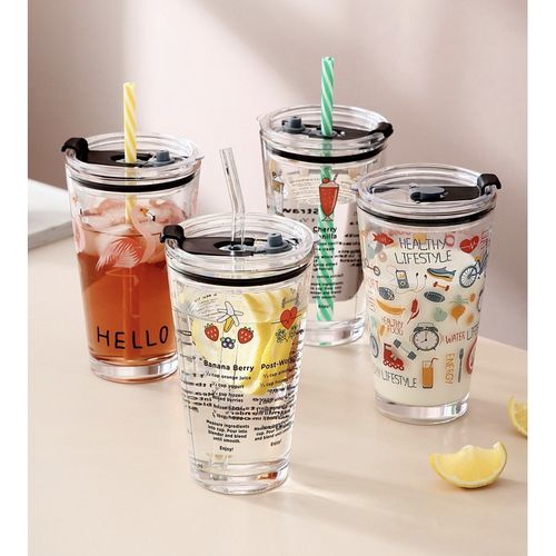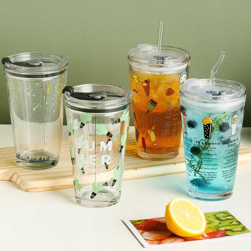 450ML Reusable Smoothie Cup, Glass Shake Tumbler With Plastic Lid- Colorless. Glass tumblers for drinking water : While other straws are made of acrylic plastic, which is brittle and and potentially harmful, we only use food grade polypropylene plastic for our straws. Shake Tumblers with straw : These tumblers cups fits perfectly in your Hand or in your Car’s Cup Holder and are Great for Smoothies – Milk Shakes or Protein Shakes baby Glass Tumblers for water and milk : Drinking Cups or Storage Jars Set includes: A drinking Lid and a Storage Lid for Multiple Uses. You can Store just about anything and are great for Jelly’s Drinks Pickling Jelly Beans Lotions or simply to take your drink on the go. Materials Odor-free, BPA-free and lead-free glass tumbler(-20~100℃) with high borosilicate straws Multi functional Lid With the sealed lid you can not only open it to insert a straw, but also can open the buckle to drink directly The milk cup comes with a food-grade soft silicone straw, protects teeth and gums, prevents drinks from spilling, and makes your baby fall in love with drinking water