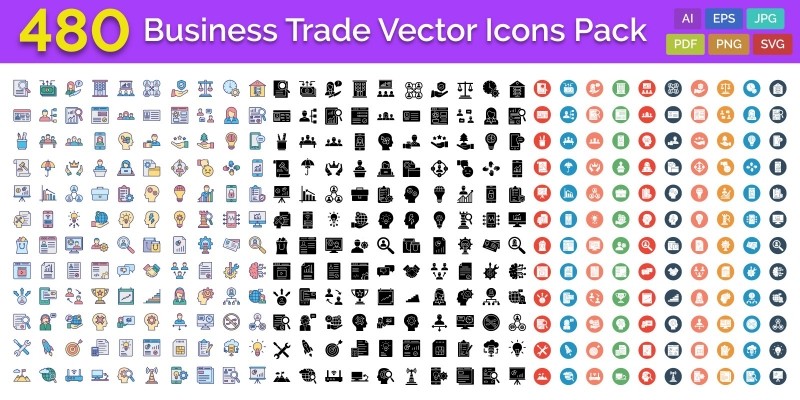 480 Business Trade Vector Icons Pack. 480 Business Trade Vector Icons Pack