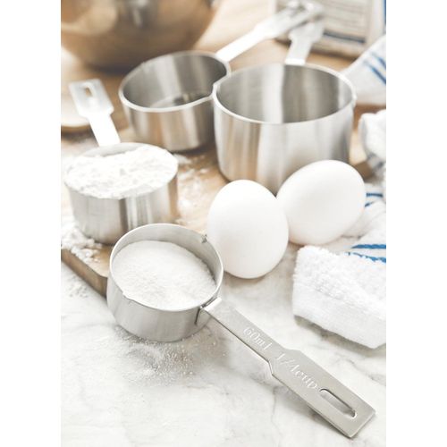Kitchencraft Stainless Steel Measuring Cups (4-piece Set) Quickly and easily ensure you have correct measurements with this set of four stylish, polished stainless steel measuring cups with clearly marked external ml and cup measuring guides, and wide, easy to grip handles. Includes 1/4, 1/2, 3/4 and one cup measures, and a storage ring to keep all cups together and ready at hand. Features Dishwasher 1.【USEFUL KITCHEN MEASURING TOOL】metal measuring cups Engineered for precision accuracy to assure consistency in food preparation with 4 different sizes. 2.【MULTI USE】Multi-functional Stainless Steel Measuring Cups, could measure rice, flour, spices, sugar, salt, pepper, and other foods or seasonings. 3.【PREMIUM MATERIAL】Measuring Cups Adopting high grade 430 stainless steel, which will not rust or bent easily, durable. 4.【EASY TO STORE】measuring cup set comes with a metal ring for stackable storage after a full day of baking or cooking. 5.【4PCS MEASURING CUPS SET】A set of four measuring cups which includes: 1/4-cup, 1/3-cup, 1/2-cup and 1-cup. Specification: Condiiton: 100% Brand New Color: Silver Material: 430 Stainless Steel Product Capacity: 1-Cup: 250ml 1/4-Cup: 60ml 1/3-Cup: 80ml 1/2-Cup: 125ml Package Weight: Approx. 276g Package Included: 4 * Measuring Cup