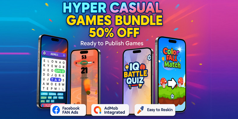 5-In-1 Hyper Casual & Casual Mobile Games Bund. Bundles featuring 5 addictive hyper-casual and puzzle games! Fully optimized for Android & iOS, easy to reskin, and Admob &
