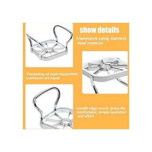 Product Description Strip cutter with 5 different blades, removable blades for easy use – Thick, sharp stainless steel blade, strengthens welding, fast and labor-saving -No sliding when cutting, convenient and safe, easy to use, labor-saving operation -Versatile, safe and easy to clean Specifications – Colour: silver -Material: The handle frame is made of 410 stainless steel, the handle is coated with iron, and the blade is made of 430 stainless steel + PS material -Size: 13 × 10.2 × 6.5cm / 5.12 × 4 × 2.56inch Package includes: 1 x Handle, 5 x Blades
