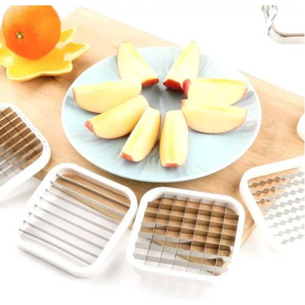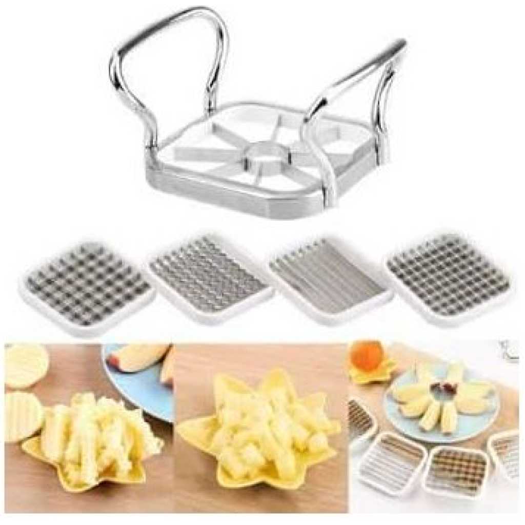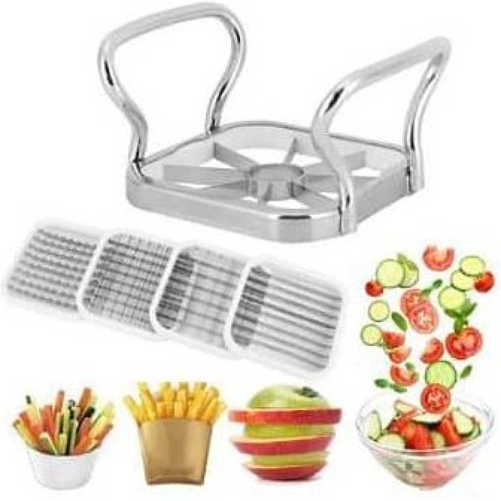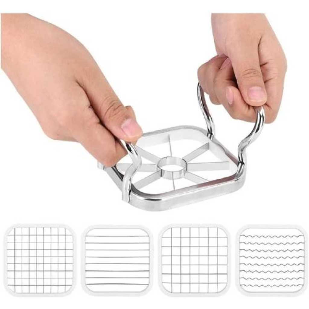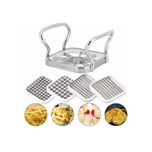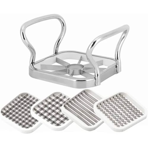 Key Features: 【Multifunction】Vegetable cutter are five different blade shapes to choose from which can be replaced as needed. The different blades of the fry cutter, ribbed, peeled and cut into the slices can meet your kitchen requirements. 【Easy to Use】The potato knife cuts potato or almost all vegetables in one step in perfectly shaped fries, and the fries cutter has a non-slip stainless steel handle for a comfortable grip that ensures your hand and safety when cutting the knife. 【Easy to clean】Rinse the fries knife under running water for a few seconds to clean the blade or wipe it with a damp cloth when cleaning it. The potato cutter is made of stainless steel and can be easily rinsed off and cleaned after each use. 【Material】The potato cutter for potato salad The handle frame is made of 410 stainless steel, the blade is made of 430 stainless steel, not easy to rust, durable, corrosion resistant, compact, save space in the kitchen and can be stored neatly 【Widespread】Potato cutter waves can effectively cut ordinary and small apples, mango, pears, potato and dragon fruits, so that you get perfect slices for snacks or cooking, and even more beautiful if you arrange fruits to meet your different kitchen needs.