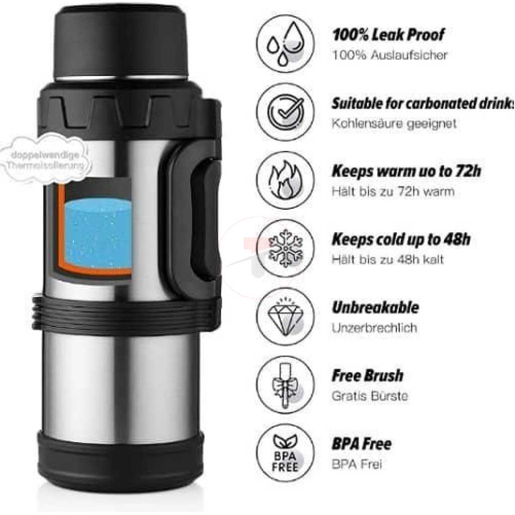 Key Features: 5 L Large Thermos Bottle Stainless Steel Double Walls Vacuum Insulated Tea Flask Great for Outdoors, Sports, Camping, Travel -Multicolor. The cup body is sprayed with plastic. Insulation is measured for 48 hours. 5000ML is really big capacity. Upgrade 304 stainless steel inside and outside. Arbitrary contraction folding handle. Arbitrarily retractable double folding handle. One button is convenient and fast for pressing out water. Easy to meet the family travel needs. Maintain liquid temperature. GREAT FOR CAMPING GREAT FOR SPORTS GREAT FOR THE GYM