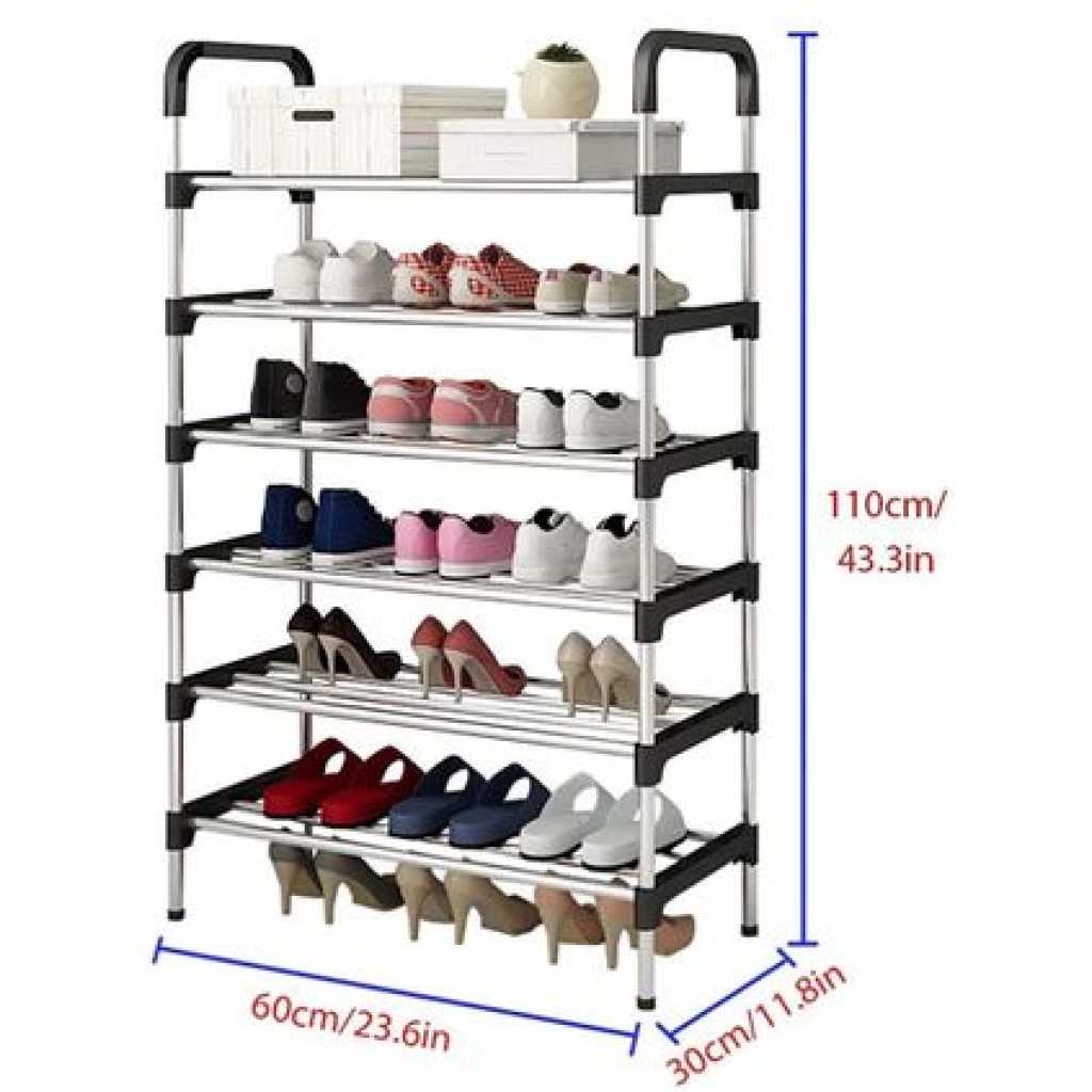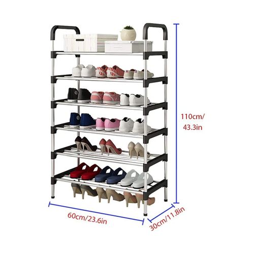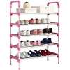 5 Layer Stainless Steel Stackable Shoes Rack Organizer Storage Stand- Pink. U-HOOME focuses on item quality, function, material, and style to make personalized furniture affordable to users, which decorates your home a better place. Our business philosophy is customer first, service foremost. U-HOOME 6-Tier Shoe Rack: Made from metal tubes and good quality plastic connector, this shoe rack is durable while used. The metal shoe rack can place in your closet, entryway, wardrobe, cabinet and dormitory, and more places to make your shoes well-organized. Why choose U-HOOME 6-tier shoe rack: Durable and Stylish: The diameter of the metal tube is 12mm, which enables this shoe tower to bear a heavier load Brand new and high quality. Quick and easy assembly. Product Details: Overall Dimensions:23.6”L x 11.8” W x 43”H(60 x30x110cm). Weight:.3.64 lb Component: Metal tube +Plastic connector Item packed in the carton: 1×6 Tiers Shoe Rack 1xAssembly Instruction