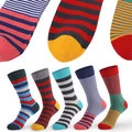 Pouze US$26.99, nakupujte 5 párů barevných pruhovaných pánských dlouhých ponožek zábavné novinkové bavlněné společenské ponožky pohodlné prodyšné kotníkové ponožky pro muže na Banggood.com. Nakupujte módní socks online.