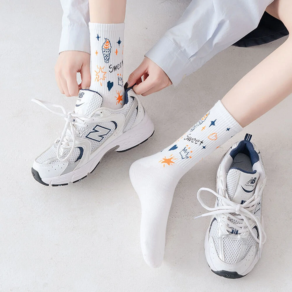 Pouze US$21.84, nakupujte 5 pár ženských bavlněných křížových písmenek Jacqaurd módních prodyšných ponožek na Banggood.com. Nakupujte módní socks online.