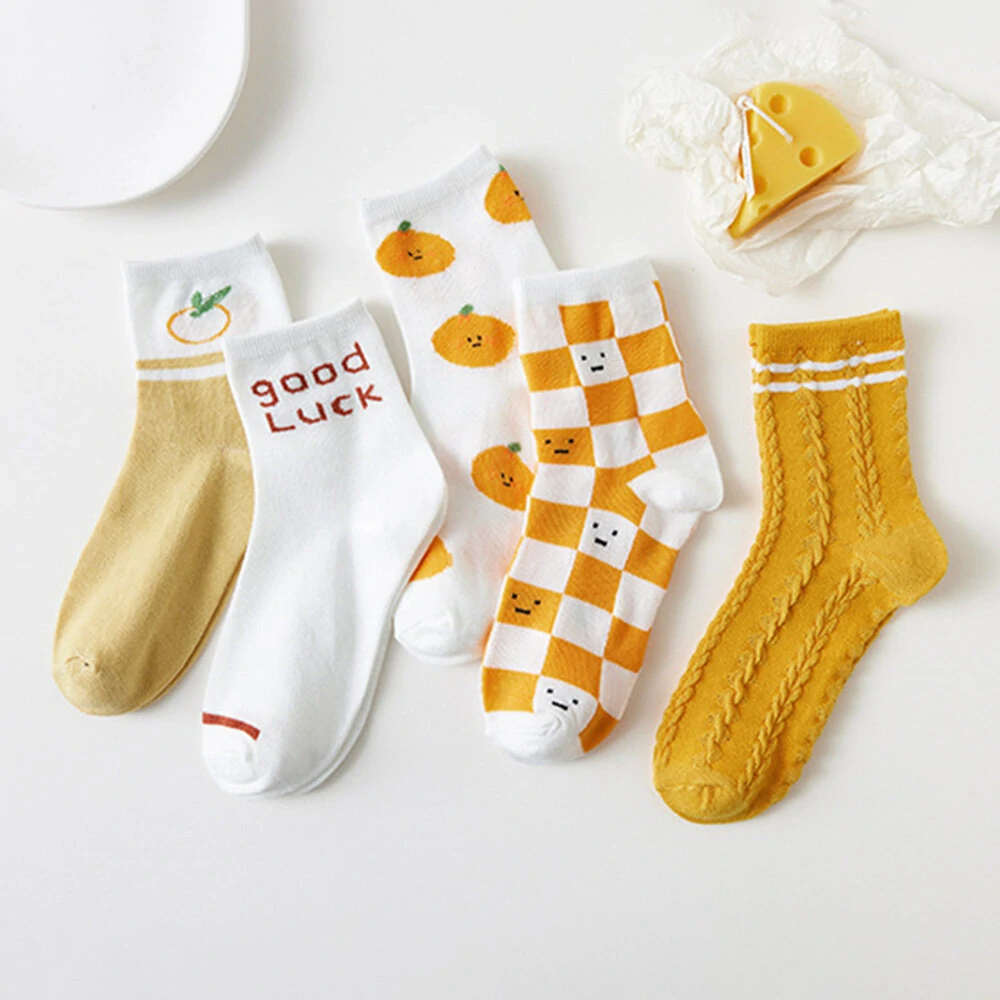Pouze US$18.39, nakupujte 5 Párů Ženy Polyester Bavlny Jacquard Různé Cartoon Vzory Módní Prodyšné Ponožky na Banggood.com. Nakupujte módní socks online.