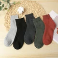 5 par mænd lavet af Dacron Terry stof tykkede ensfarvede enkle varme sokker