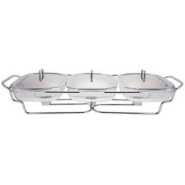 Serve, present and keep your dishes warm in this beautifully practical 5pc Stainless Steel & Glass Food Warmer Set from Living Space. Prepare your favorite dishes and transfer them into the glass casseroles. Place the provided tea lights under the casserole and it will keep your food warm and ready to be enjoyed. Tarnish-proof stainless steel stand & casserole covers Five glass casseroles: four 700 ml & one 1.5 liter Dishwasher-safe, freezer-safe, oven-safe & microwave-safe bowls Ideal for entertaining dinner parties and buffets. Capacity: 4x 0.7 Liters; 1 x 1.5 Liters Set includes: Steel stand; 5 glass serving bowls; 5 Stainless steel lids; 5 Tea lights
