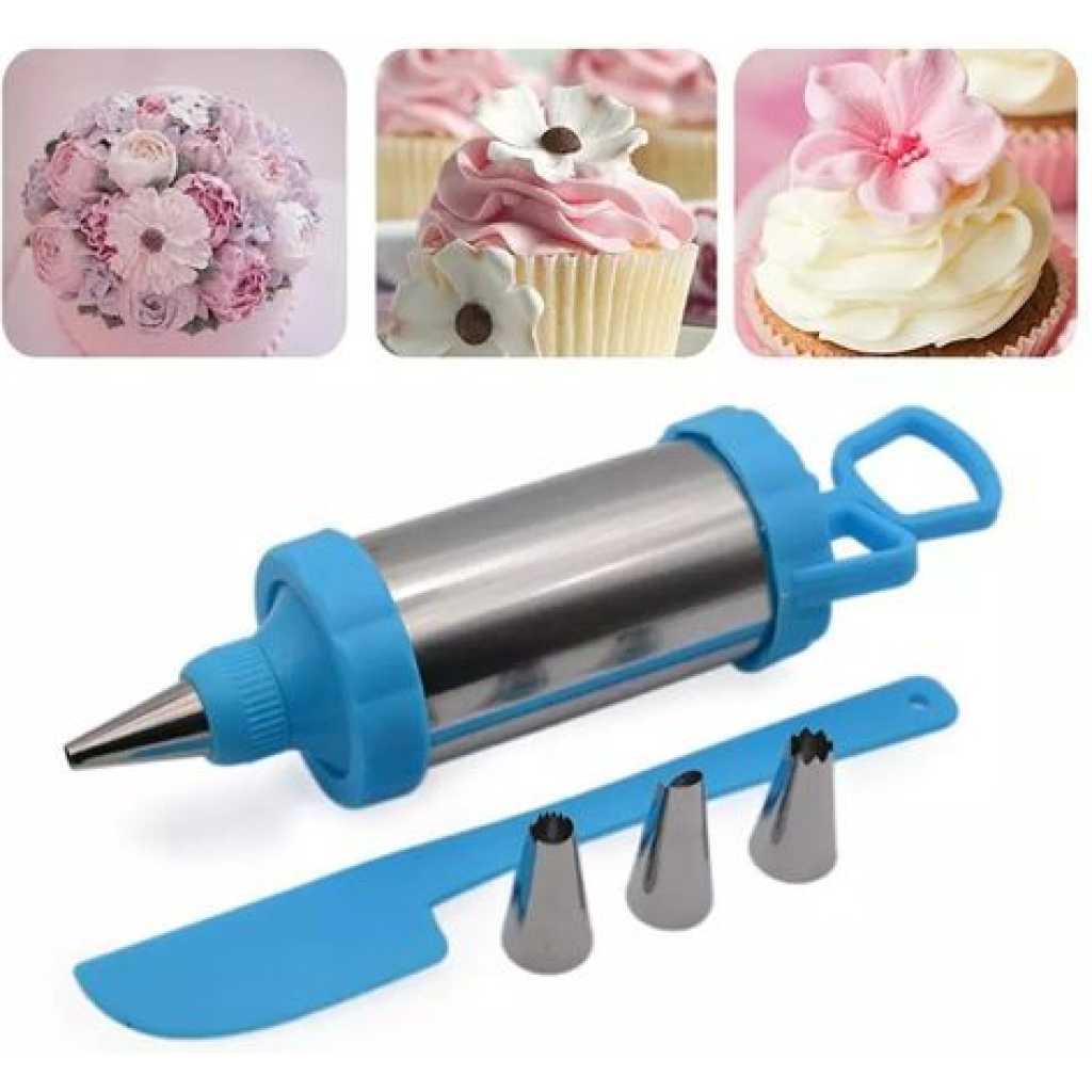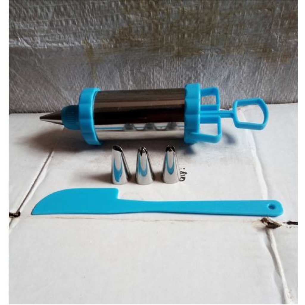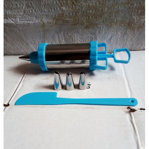5 Pieces Cake Decorating Tool With Spatula/Blue This cake-designing set consists of 3 piping nozzles, a spatula, and a cake-decorating syringe. it is very useful during baking especially when decorating cakes. connect the piping nozzle at the top of the syringe and begin to decorate your cake. Key Features: 5 Pieces Cake Decorating Tool With Spatula/Blue Sold 5 pieces as shown in the picture Used for icing and decorating cakes Comes with a spatula Affordable Good quality Easy to clean Makes various icing designs