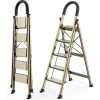 5 Step Ladder, Folding Step Stool with Anti-Slip Wide Sturdy Pedal with Convenient Handgrip, Portable Lightweight Aluminum Stepladder for Home, Office, Library Indoor 5ft Stepladders With Rubber-cotton Armrests Versatility: With a convenient handle, the ladder is easy to climb and carry. It is ideal for your home kitchen and shop, and can also be used as a chair. Product name: Ladder Expanded size: 84×53.5x142cm/33x21x55.9in Folded size: 5x153cm/1.9×60.2in Weight: 5.12kg Material: aluminum alloy Note: The product only contains 1pcs ladder It is very suitable for working at different heights and can be reused well.