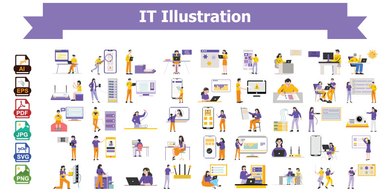 50 High-Quality IT Illustrations Pack. Get 50 premium IT illustrations for your tech, software, and digital projects. Ideal for developers, designers, and tech companies