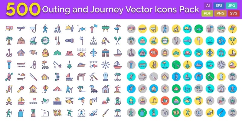 500 Outing and Journey Vector Icons Pack