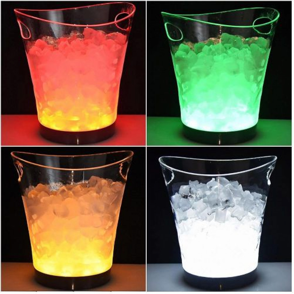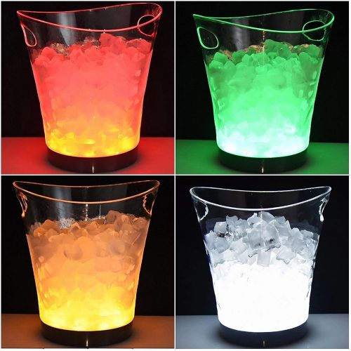 Professional technology of led color changing allows the ice bucket to be converted to a variety of colors at any time, and the color gradually changes to suit every occasion and atmosphere. LED ice bucket is a perfect accessory for bar, party, club, any place of amusement for decoration or interspersion. The ice bucket made from premium quality food-grade PP, extremely sturdy and lightweight, never fear it will snaps under pressure. Key Features: 【LARGE CAPACITY】5 Liter capacity, Good for up to 750ml wine champagne and a half-dozen 330ml beer Ice Bucket 【SAFE MATERIALPE】environmental-friendly protection material,Waterproof, anti-fall 【EASY OPERATION】A single push-button on the underside of the Light-Up Ice Bucket turns the bright LED lights on and off 【LED COLOR CHANGING】Led Waterproof with Colors Changing,Power by 2 AA Batteries(batteries not include),allows the ice bucket to be converted to a variety of colors at any time 【PERFECT FOR ENTERTAINING】Makes any occasion more festive. Perfect for indoor-outdoor bars, celebrations, BBQ, cookouts and all parties or events. Also can be used as a great centerpiece vase for large floral arrangements and Christmas parties!