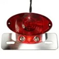 5W Zadní Kocourkové Brzdové Světlo na Motocykl S Červenou Čočkou a Kromovaným Držákem Na Porovnávací Tabulku
