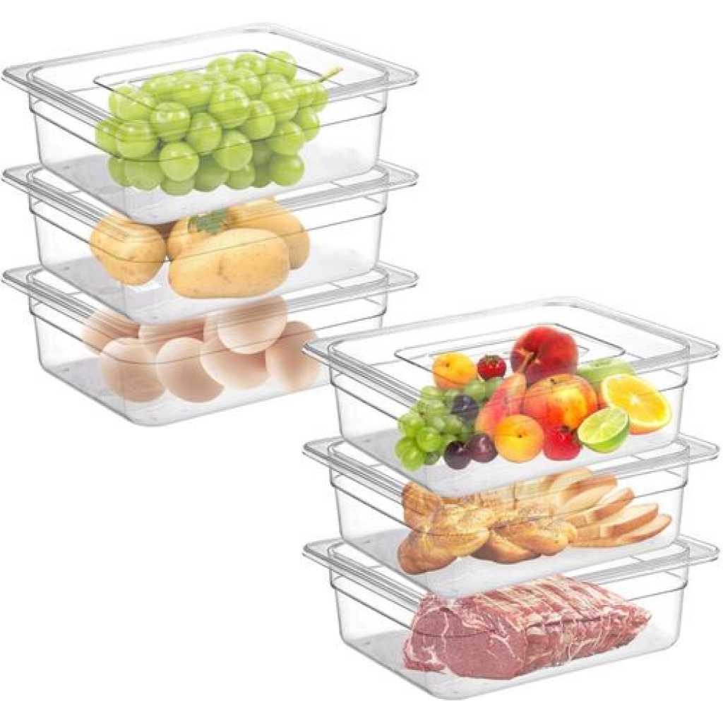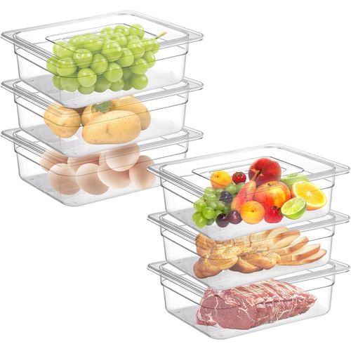 6.0L Commercial Stackable Deep Polycarbonate Gastronorm Food Pan Commercial Hotel Pan Buffet Hotel Plastic Food Storage Container Freezer-Safe for Kitchen Restaurant Fruits Vegetables With Cover