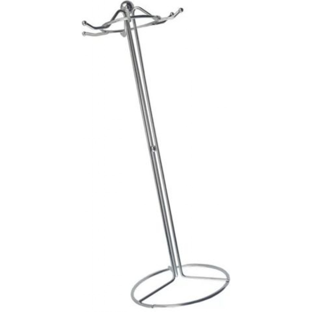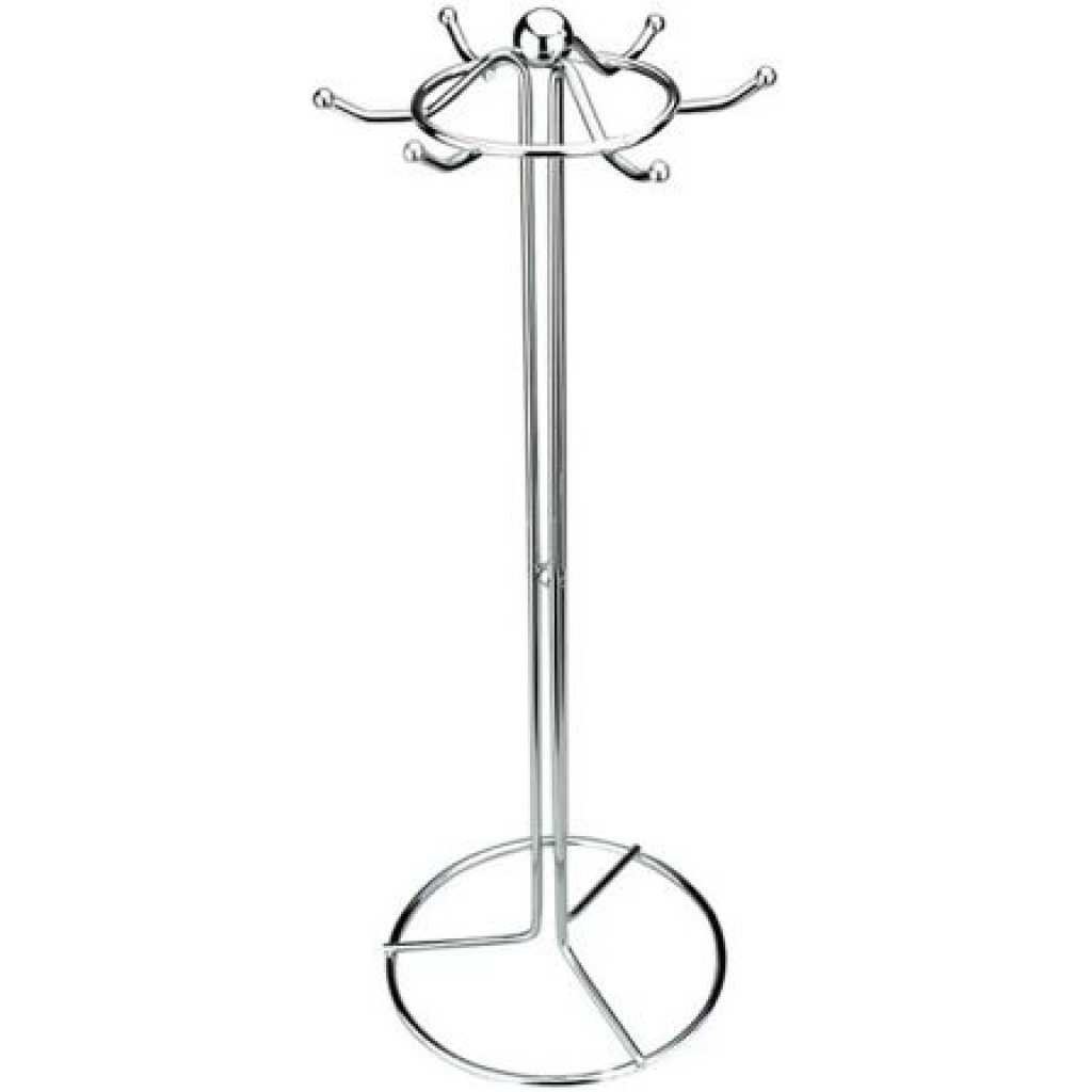 Features 6 metal hooks that can be used to hang cooking utensils like ladles, slotted spoons, pasta serving spoons. Roasting design, perfect for keeping your most-used utensils within easy reach on your counter top. A must have for any kitchen as it reduces clutter in your kitchen space. Key Features: Strong and long-lasting in chrome finish iron Keeps spoons organized while saving space Scroll design adds a touch of elegance to any kitchen Made of stainless steel Holds 6 spoons Measures: 12’’ H x 5.5’’ W x 5.5’’ L