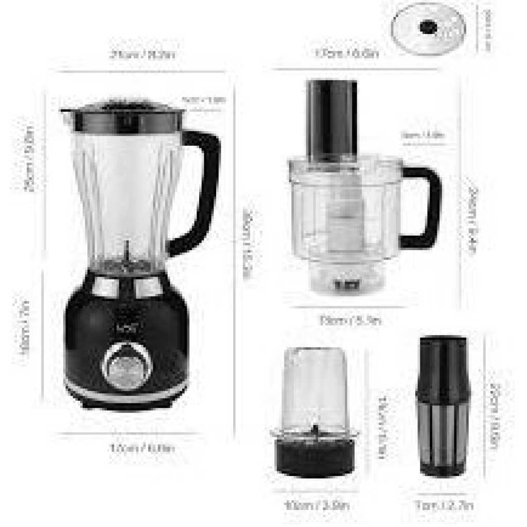 Key Features: 【Muti-function Blender and Food Processor】Chopping , blending, grinding ,filtering,4 in 1 Multi-function food processor blenders. 4 different containers and 3 types of blades,you can use it to make smoothies, milkshakes, fruit juices, vegetable juices, pesto, sauces, minced meat, peanut butter, almond/soy milk, coffee powder, spice powder, baby food etc.You can enjoy freshly ground coffee/juice at home, and as a little helper to your cooking, so you can save more money and time in kitchen ! 【Big capacity with filter & Easy clean 】All parts of this grinder and mixer for kitchen are removable and easy to assemble and clean. The bottom four corners are installed with anti-skid silicone pad, stable without displacement, , reduce resonance. Big capacity with filter ,1.8L blending cup+1.0L chopper jar +0.6L grinding jar. This Ice crusher blender built-in filter, Juice is filtered without residue. 【Powerful motor &Safety protection】The food processor blender with 2 level adjustable speed ,pure copper motor, strong power,long service life, with motor overheating protection, overheat automatic stop working. When the cup separated from the machine ,the machine will stop working,which is very safe .Multiple heat dissipation system, porous heat dissipation setting can discharge heat to extend the working life of the motor. 【Food grade Material】The countertop blenders with upgraded 304 three-dimensional 6 blades, fast blending to make the juice more delicate. 304 Three-dimensional grinding 4 blades, grinding powder fine and more delicious. The cup body is made of transparent food grade PC material, which is unbreakable and durable. 【Ideal gift 】Our blender for shakes and smoothies with gift package and it is an elegant Ideal gift for any occasion, best choice for birthday, Christmas, Thanksgiving,Mother’s Day,Housewarming . 【Different occasion needs】: multi-functional food processor, baby complementary food machine, meat crusher, grain beans coffee grinder, ice crusher, vegetable and fruit blender