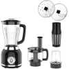 【Muti-function Blender and Food Processor】Chopping , blending, grinding ,filtering,4 in 1 Multi-function food processor blenders. 4 different containers and 3 types of blades,you can use it to make smoothies, milkshakes, fruit juices, vegetable juices, pesto, sauces, minced meat, peanut butter, almond/soy milk, coffee powder, spice powder, baby food etc.You can enjoy freshly ground coffee/juice at home, and as a little helper to your cooking, so you can save more money and time in kitchen ! 【Big capacity with filter & Easy clean 】All parts of this grinder and mixer for kitchen are removable and easy to assemble and clean. The bottom four corners are installed with anti-skid silicone pad, stable without displacement, , reduce resonance. Big capacity with filter ,1.8L blending cup+1.0L chopper jar +0.6L grinding jar. This Ice crusher blender built-in filter, Juice is filtered without residue. 【Powerful motor &Safety protection】The food processor blender with 2 level adjustable speed ,pure copper motor, strong power,long service life, with motor overheating protection, overheat automatic stop working. When the cup separated from the machine ,the machine will stop working,which is very safe .Multiple heat dissipation system, porous heat dissipation setting can discharge heat to extend the working life of the motor. 【Food grade Material】The countertop blenders with upgraded 304 three-dimensional 6 blades, fast blending to make the juice more delicate. 304 Three-dimensional grinding 4 blades, grinding powder fine and more delicious. The cup body is made of transparent food grade PC material, which is unbreakable and durable. 【Ideal gift 】Our blender for shakes and smoothies with gift package and it is an elegant Ideal gift for any occasion, best choice for birthday, Christmas, Thanksgiving,Mother’s Day,Housewarming . 【Different occasion needs】: multi-functional food processor, baby complementary food machine, meat crusher, grain beans coffee grinder, ice crusher, vegetable and fruit blender