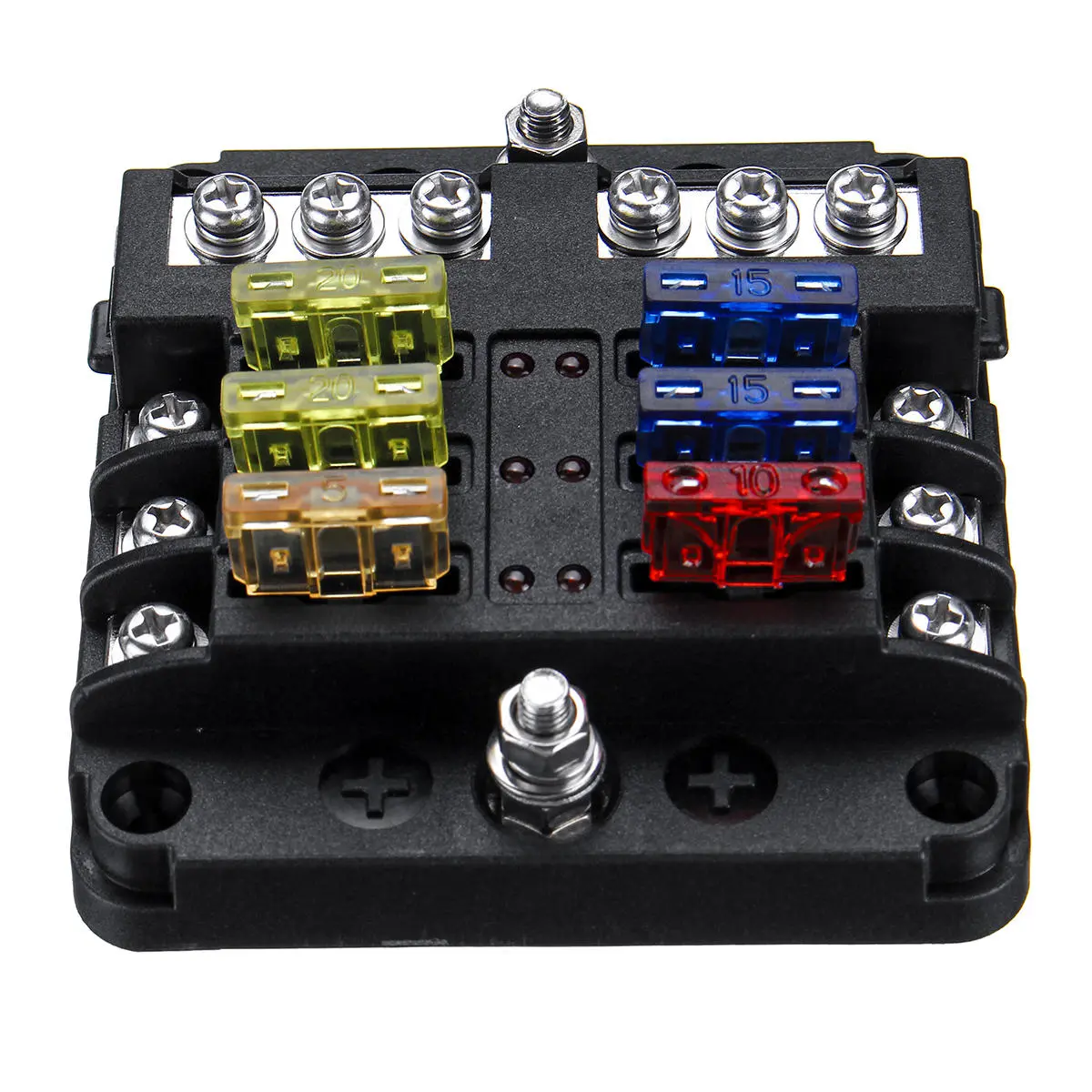 6 Måder Blade Sikringsboks & Distribution Bar Bus Båd Bil Kit Holder m/ LED 32V 12V