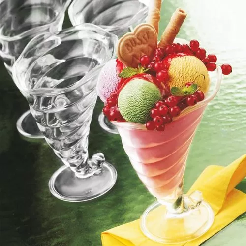 Add some variety to your dessert presentation with the quirky Fortuna Ice Cream Sundae Dishes. Featuring a ribbed curved design these dessert glasses are as unique as the creations you serve in them. Perfectly suited to serving ice cream, sorbets, sundaes and Knickerbocker glory, they are extremely versatile and can be used at home or in commercial settings such as pubs, restaurants and cafés. Key Features: Ice cream sundae glasses • Material: Soda-lime glass • Ribbed design • Made in Italy • Dishwasher safe • Perfect for serving ice cream, sundaes and Knickerbocker glories • Suitable for commercial use