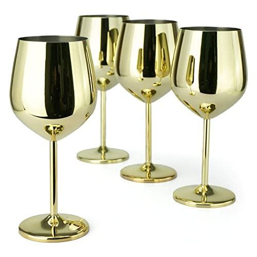 6 Pc, 18.5oz Juice Champagne Stem Wine Glasses Decorative – Gold The modern minimalism style stainless steel wine glasses easily create romance to your tabletop and enjoy a happy time with your friends or lover. CASUAL & CHIC Perfect for a picnic, day-to-day meals, or a lavish dinner party. Drinks stay chilled longer, so they’re a great choice for outdoor entertaining. They also take up less space in the cupboard or in the picnic basket than conventional wine glasses PREMIUM QUALITY & ELEGANCE Made from high-grade 18/8 stainless steel, they feature a beautiful, sleek satin finish while sitting comfortably in your hand WINE GLASS COLLECTION These stainless steel stemmed wine glasses are perfect for serving all your beverages holding up to 18.5 ounces. Perfect for enjoying a glass of your favorite vino indoors or outdoors! These elegant wine glasses are made of high-quality stainless steel with smooth rose gold coating, it not only provides a stylish and elegant outlook but also ensure the max safety for the whole family. Key Features: 6 Pc, 18.5oz Juice Champagne Stem Wine Glasses Decorative – Gold WINE GLASS COLLECTION: These stemmed wine glasses are perfect for serving all your beverages holding up to 18.5 ounces. PREMIUM QUALITY & ELEGANCE: Made from high-grade 18/8 stainless steel, they feature a beautiful, sleek satin finish while sitting comfortably in your hand. BETTER THAN GLASSWARE: They’re shatterproof, dishwasher safe, and BPA free, making them more durable and safer than glass. Size: 3.75″ Dia x 8.25 CASUAL & CHIC: Perfect for a picnic, day-to-day meals, or a lavish dinner party. Drinks stay chilled longer, so they’re a great choice for outdoor entertaining. They also take up less space in the cupboard or in the picnic basket than conventional wine glasses. GREAT GIFT: These stainless steel stemmed wine goblets are perfect for gift-giving as they add a touch of modern elegance to any occasion. Order yours today