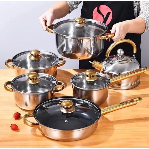 The 6 Piece set Saucepans The set contains 6 items: a saucepan with a glass lid 16×10.5 cm; 2.2L saucepan with glass lid 18×11.5cm; 3.0l saucepan with a glass lid 20×12.5cm; 4,0l steel Thickness 0.5 mm Stainless steel special shape, eliminating accumulation of food residues and grease rim preventing transfusion liquids overflowing Termosberegayuschee bottom: the bottom of the five-layer induction with elevated termootdachey Rapid heating of food, long-term retention of heat for cooking sufficiently small quantities of water and oil Minimal loss of minerals, vitamins and taste Suitable for use on all types of cookers, including induction Dishwasher safe Key Features: Color : Silver Material: stainless steel. Cover material: heat resistant glass. Number of items in a set: 6 Bottom type: 5-layer. Measurement scale: yes. Handles fastening method: riveted connection. Handle type: hollow. Lid with a steam outlet: yes. Metal polishing: mirror / satin. Dishwasher safe: yes.
