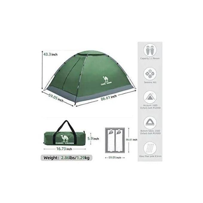 6 Person Camping Tent with Removable Rain Fly, Easy Setup Outdoor Tents Water Resistant Lightweight Portable for Family Backpacking Camping Hiking Traveling- Multicolor Removable Rain Fly The gauze net between the tent and the rain fly will provide ventilation to keep cool and dry. Portable and Lightweight Carry Bag:24.7” x 5.9” Diameter. Weighs only 4.86 lbs, which makes it great for backpacking and easy trasnportation. Windproof Rope windproof ropes with 8 iron ground nails,make this 2 person tent more stable in the windy and rainy, snow weather. Cloth,Oxford,Polyester 【MATERIAL】190T polyester flysheet provides sun protection, resists wind and sand, 150D Oxford cloth at the bottom which will push it quick-drying, windproof and water resistant of 2000+,prevents water penetration to keep inside dry. Using 8.5MM glass fiber as the support rod, light and firm, with 8 iron ground nails to increase its stability and prevent the bracket from moving. 【VENTILATIO】Double-layer dual-purpose design on the top, external mosquito-proof breathable screens, open ventilation, alleviate the sultry heat. Promote air circulation in the tent, enjoy the natural scenery in inside. Suitable for outdoor camping or enjoying family time in the courtyard at home. 【Durable & Stable】CAMEL CROWN camping tent is divided into two layers, the inner and outer tents are superimposed together to form a windproof and rainproof tent. High grade fiberglass poles for nice wind resistance. Space can accommodate 2 person, suitable for friends or family travel hiking camping. 【EASY ASSMBLY】Easy setup in only few minutes, with the lightweight portable carrying bag, this dome camping tent can be taken to anywhere without taking much space, making it perfect for anyone wishing to travel light. 【OCCASIONS】This is an ideal tent to fit your needs for traveling, hiking, festivals outdoors and planning a weekend camping trip with your family and friends. take it and go on a trip with your beloved to enjoy outdoor life.