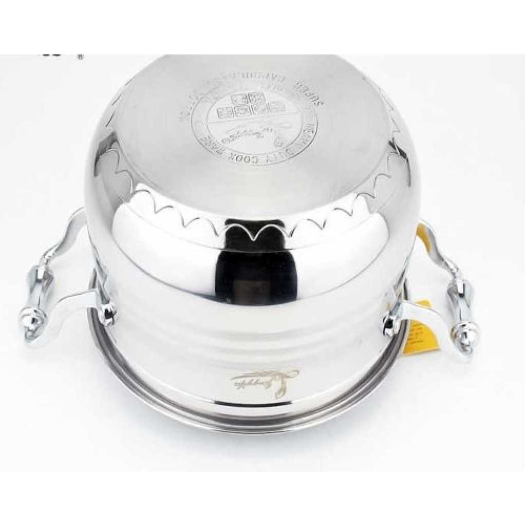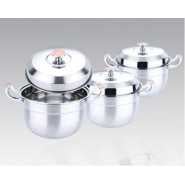 6 Piece 20, 22 & 24CM Stainless Steel Saucepans Cooking Pots- Silver. A set of pots made of stainless steel with a thick, multi-layer capsule-type bottom. The pans can be used on any type of hob, including induction. The outer surface of the pots is matted, and along the top, there is a mirror strip. Heat-resistant glass covers are equipped with a steam outlet, along the edge of the reinforced stainless steel rim to prevent chipping. You can use a dishwasher for washing. The set includes three pots, Cooking pot KORKMAZ Induction Silver pot 9 Piece Set 16×9 cm / 1.8 Lt Casserole, 20×10 cm / 3.5 lt Casserole, 20×22 cm / 24 Care Any dish detergents. Do not wash with abrasive abrasives. Do not use metalized or hard wipes or brushes