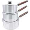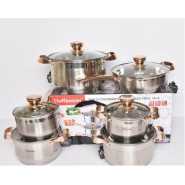 The 6 Piece set Saucepans The set contains 6 items: a saucepan with a glass lid 16×10.5 cm; 2.2L saucepan with glass lid 18×11.5cm; 3.0l saucepan with a glass lid 20×12.5cm; 4,0l steel Thickness 0.5 mm Description Stainless steel special shape, eliminating accumulation of food residues and grease rim preventing transfusion liquids overflowing Termosberegayuschee bottom: the bottom of the five-layer induction with elevated termootdachey Rapid heating of food, long-term retention of heat for cooking sufficiently small quantities of water and oil Minimal loss of minerals, vitamins and taste Suitable for use on all types of cookers, including induction Dishwasher safe Key Features: Color : Silver Material: stainless steel. Cover material: heat resistant glass. Number of items in a set: 6 Bottom type: 5-layer. Measurement scale: yes. Handles fastening method: riveted connection. Handle type: hollow. Lid with a steam outlet: yes. Metal polishing: mirror / satin. Dishwasher safe: yes.