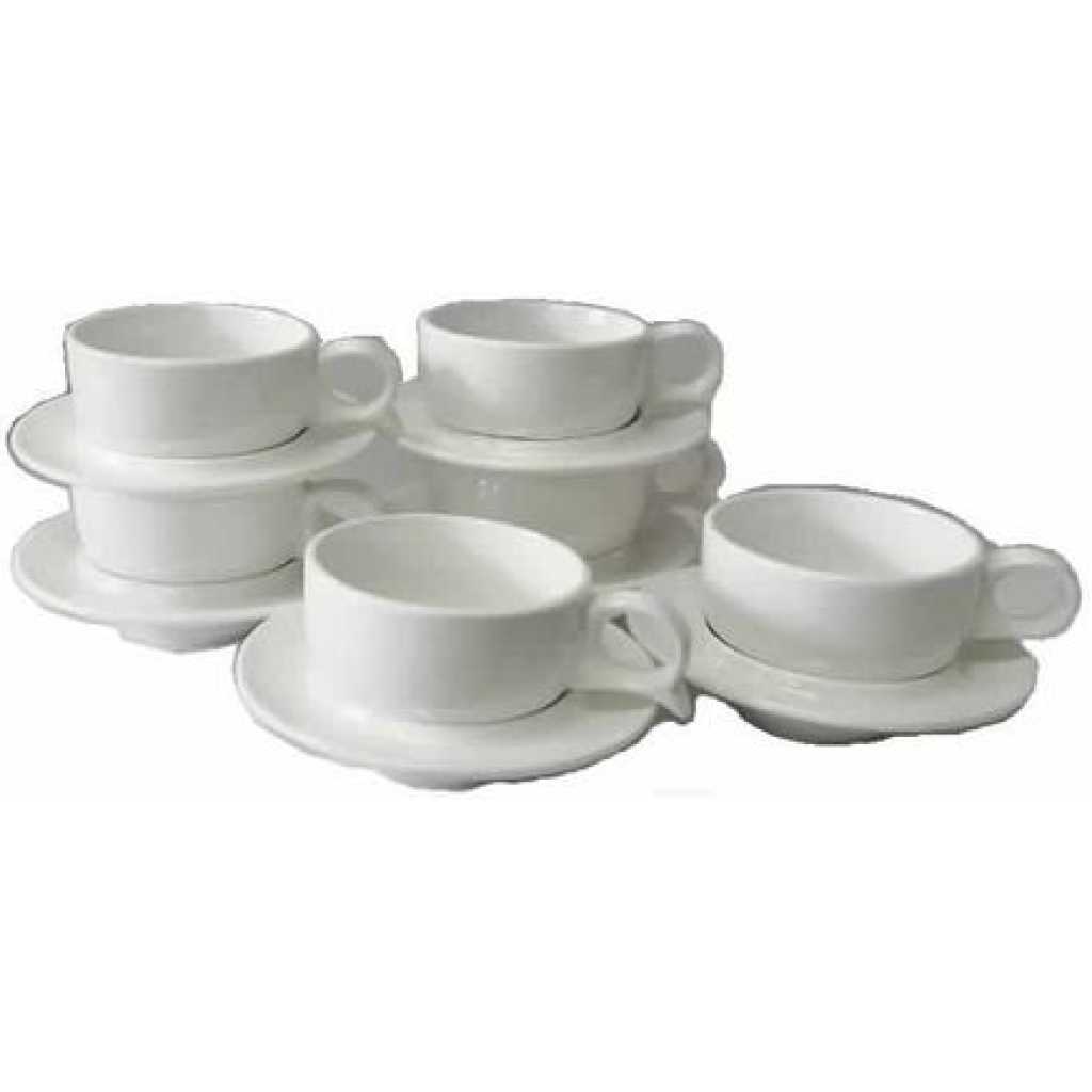 Set of 6 fine white porcelain cups and saucers set (2.4 oz), elegant and gorgeous design. Perfect for espresso, Turkish coffee and tea, also can be used for cappuccino cups, macchiato, latte, espresso cups, demitasse cups, coffee cups Ships in a beautiful, classy box, perfect for gift giving Dishwasher safe safe in microwave This gorgeous 6 pc espresso cups, Turkish coffee set is perfect for your parties, giving as a gift or just simply decorating your house with the elegant design. The set is made from fine white lead-free porcelain adorned with carat gold trim. The classic design will complement traditional and contemporary taste. Espresso cups are safely packaged in a beautiful gift box, perfect for gift giving for weddings, holidays and other occasions.