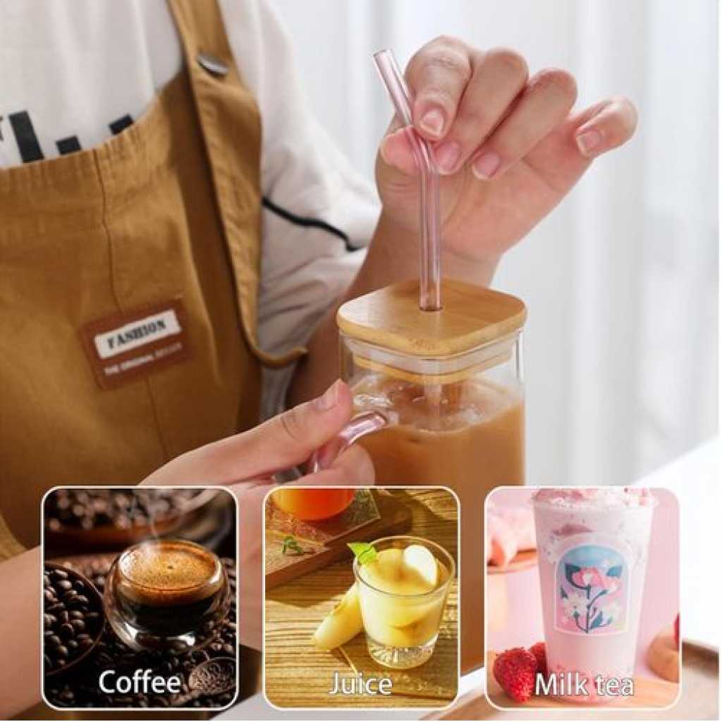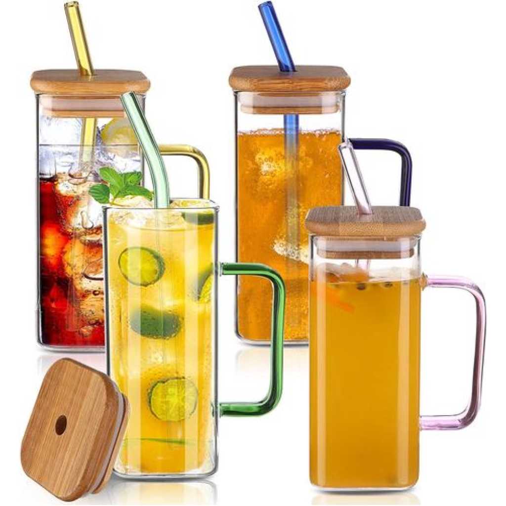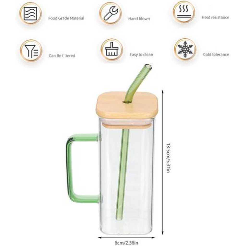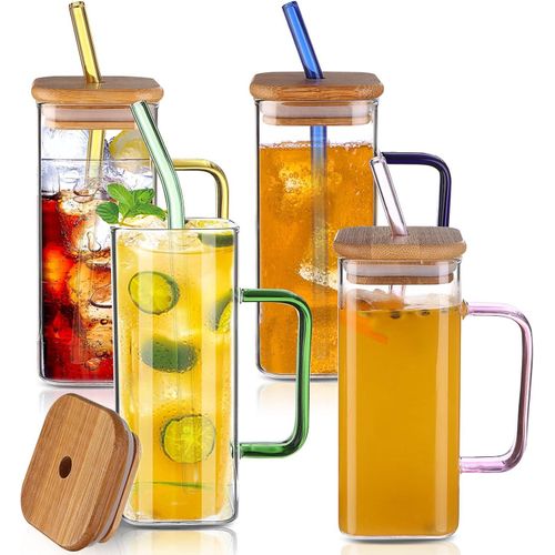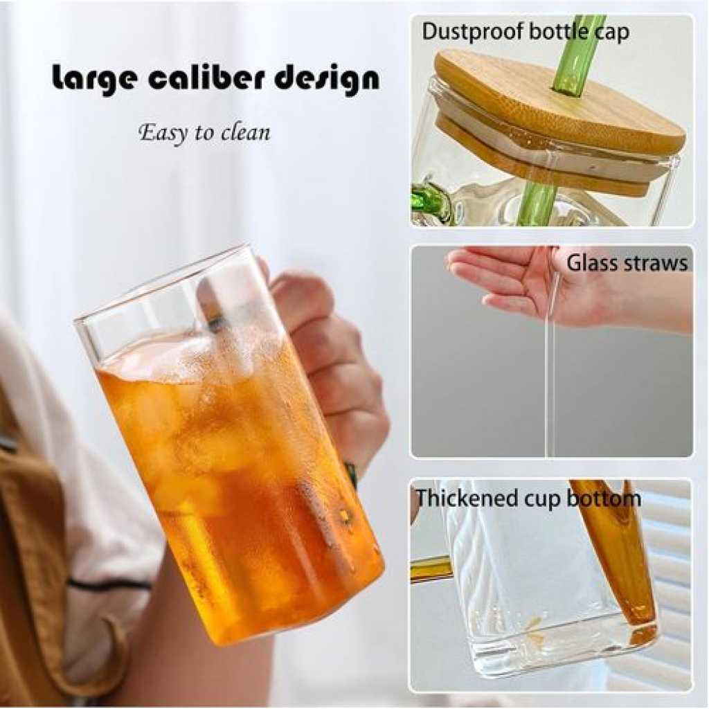 Key Features: Water bottle material: square glass cups made of high quality high borosilicate glass, square drinking glasses have lids and straws, tea glasses can be used for a variety of cold drinks, such as fruit juices, beverages, fruit tea, milk tea. Special design: the smooth lines of glass can with a thick handle are elegant and beautiful, iced tea glasses has a bamboo wood dustproof lid and a high quality glass straw, it is a unique glass container. Travel tumbler : coffee jars with lids have ergonomic handles so you can easily hold the cups, and clear coffee cup are large enough to hold more drinks or coffee. The spout is a standard spout so when you make your own juice you can put large pieces of pulp or other ingredients into the cup.