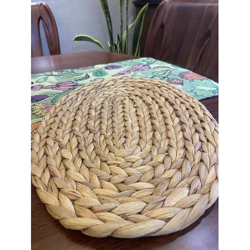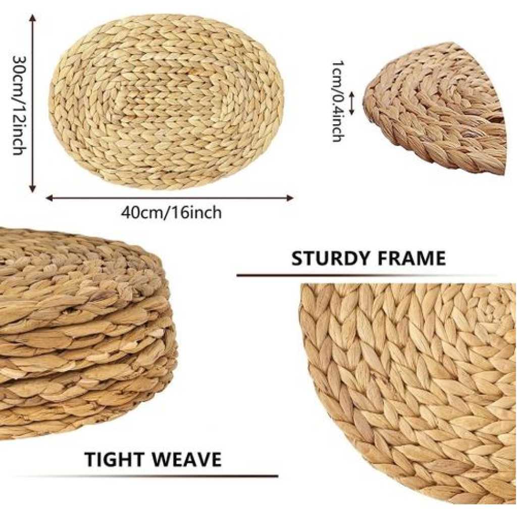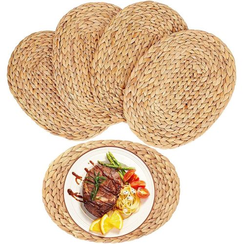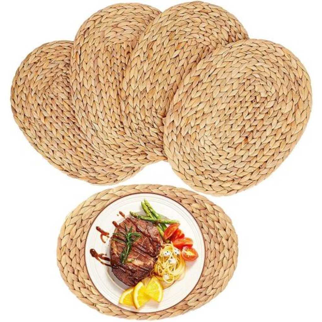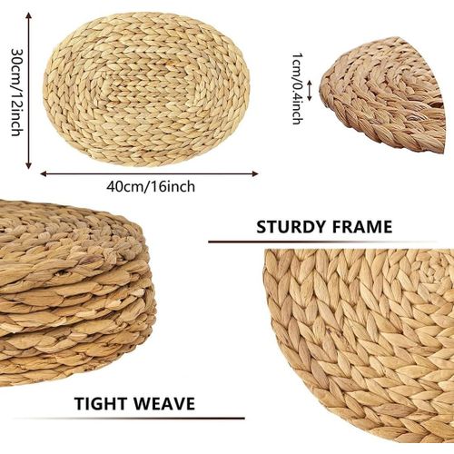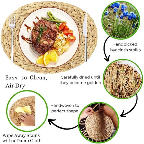 6 Pieces OF Oval Woven Placemats, Natural Water Hyacinth Placemats Straw Braided Rattan Placemats, 12×16 Inches Plate Chargers Set, Non-Slip Heat Resistant Woven Chargers for Dining Table Set of 6 Oval Plate Chargers, Braided Placemats Natural Water Hyacinth Handmade Woven Placemat 12*16 inches Heat Resistant Thick Hot Pads Mats Trivet. Why choose our woven kitchen placemats? 1-The oval woven placemat has excellent applicability and is an indispensable helper for you. Our farmhouse style weave placemats size: 12*16 inches, 4 Pack woven placemats, which provide perfect insulation for your dining table. Thick washable place mats provide excellent protection for you to place hot pots, pans, bowls, and plates on your dining table or countertop. These outdoor placemats for round tables are an ideal choice for kitchens, bedrooms, bathrooms, parties, libraries, restaurants, offices, and bars. 2-The thick and durable oval dining mat is woven with 100% Natural Water Hyacinth to better protect your desktop and countertop. Boho woven trivet placemats are made with Natural Water Hyacinth yarn helping protect your countertops from hot pots, pans, and plates while also absorbing condensation and protecting your surfaces from moisture damage. They provide a soft material against fragile surfaces, so unlike metal trivets or wood trivets, Natural Water Hyacinth trivets placemats will never scratch your table!
