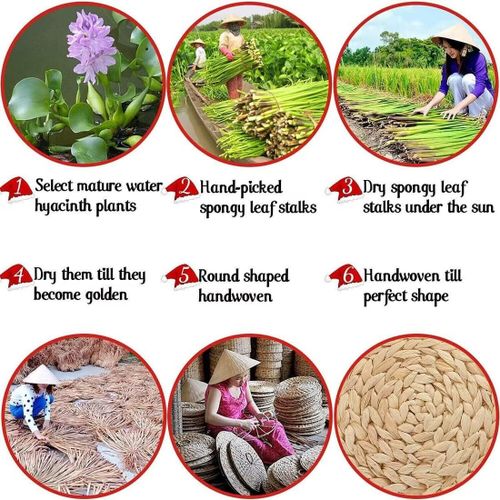 Key Features: 6 Pieces OF Oval Woven Placemats, Natural Water Hyacinth Placemats Straw Braided Rattan Placemats, 12×16 Inches Plate Chargers Set, Non-Slip Heat Resistant Woven Chargers for Dining Table 1、What You Get: 4-Pack Oval Woven Placemats Table Mats Natural Water Hyacinth Trivet, 12*16 inches Plate Chargers, Hot Mats, 100% Natural Water Hyacinth Placemat, Boho Charger Plate – Farmhouse Heat Dinner Plate Mat Set – Kitchen Decor Hot Pads Pot Holders. 2、High-Quality Materials: These woven placemats are made of 100% Natural Water Hyacinth, which has excellent firmness and durability. Allowing you to safely protect your kitchen and dining room table surfaces from Hot Pans. These woven table mats for dinner tables are comfortable and soft, friendly to children and pet, with a thickened design, compared with other table placemats, it has higher high temperature resistance, is not easy to damage, and can be used repeatedly. 3、Anti-Slip Performance & Easy to Clean: These braided placemats have excellent anti-slip performance, which can prevent your drinks and food from spilling and sliding. These woven placemats for round tables are a bright spot in your life. These boho placemats are easy to clean, easy to remove stains, and greatly save your time and energy. 4、The Perfect Gift: These Natural Water Hyacinth placemats for the dining table are the most creative home gift this year, the Best Mother’s Day Gift for Wife and Mother. Our woven table mats offers a blend of boho and rustic farmhouse, which meets all your aesthetic requirements. Woven Placemats are a great choice for your daily meals, parties, and holidays throughout the year like Halloween, Thanksgiving, Christmas, Easter, Birthday, Wedding, Valentine. 5、High Quality Customer Service: We’re committed to providing exceptional customer service. If you have any questions or concerns about our oval woven placemats, please don’t hesitate to reach out to our friendly customer support team.