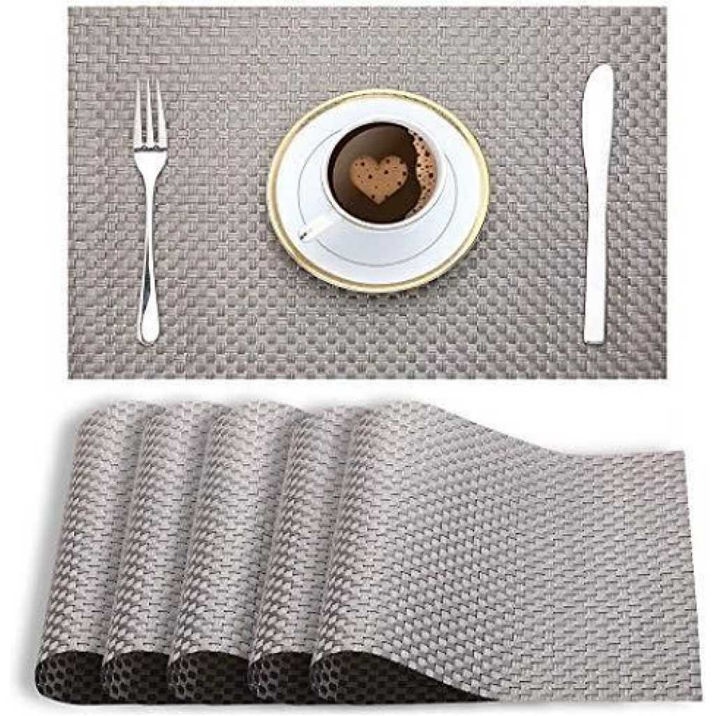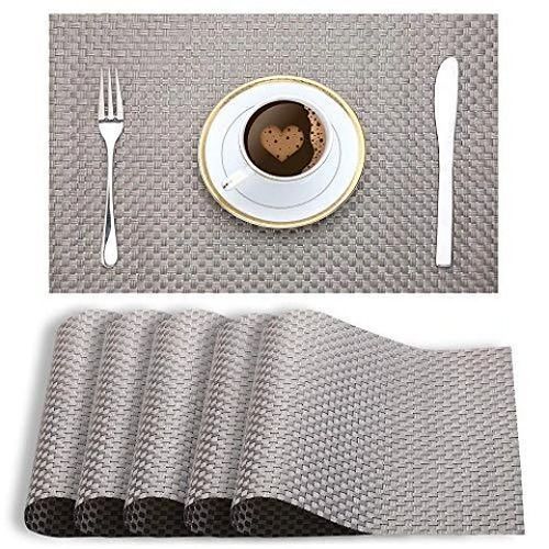 Environmental PVC material used, durable, free bending, heat resistant. *BASKET WEAVE: texture keeps dishes, plates, crockery/ cutlery from falling off and breaking. *HOME DECOR: Stylish placemats are a good decoration for home, dining hall, kitchen, hotel & office. *PROTECTION: Table mats protects dining table from water marks, heat, spills, stains and scratches. *EASY CARE: Hand wash in warm soapy water and easy wipe dry. Non fading, non stain. No machine washes. *PACKAGE: Table Placemats Set of 6, Size:18″x12″(45cmx30cm), Material: 70% PVC and 30% Polyester. Package Dimensions: 12.5 x 7.6 x 1.4 inches Key Features: Table placemats set of 6 Pcs Easy to Wipe Clean. Heat resistant. environmental PVC material used. Non fading, non stain. No machine washes.