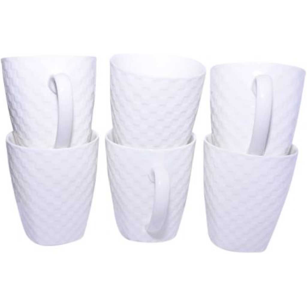 Key Features: 6 Pieces of Self Design Mugs/Cups – White. Colour: White Coffee mug made without any chemical process Reusable and washable it is microwave safe. 100% Handmade out of clay