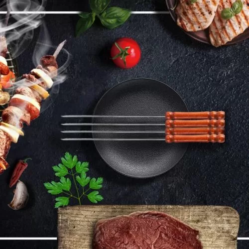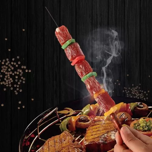Key Features: Safe Materials These kebabs are made of high quality wood and food grade metal materials, which are rust resistant, heat resistant, sturdy and reusable. WOODEN HANDLE Provides a comfortable, long-lasting grip, prevents finger burns and can be easily set up, rotated and removed from the grill. Pointed Round Shield The tortoise head has a 15° sharp angle that will not hurt hands. It is convenient and quick to carry meat and vegetables. Enjoy it with ease. Easy to Clean After each use, you can put it in the dishwasher or hand wash and wipe it with a towel. No residual smell, can be reused for a long time. Wide Range of Applications Our barbecue skewers are suitable for BBQs, cocktail parties, birthday parties, fruit grills, parties, outdoor play, weddings and other occasions.