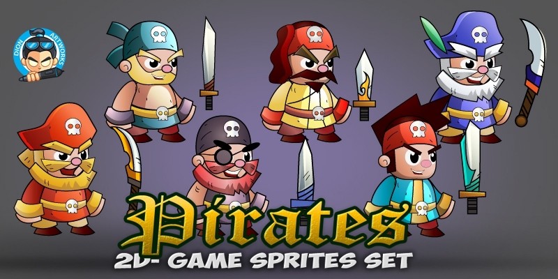 6- Pirates 2D Game Character Sprites Set. Game Character Sprites