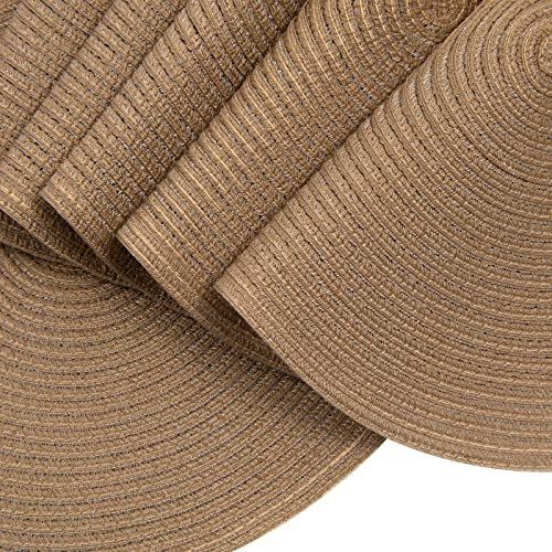 Round Sparkle Placemats Set of 6 Decorative Bling Placemats for Holiday Party Wedding Glitter Table Mats Put a modern twist to your classic wooden dining tables with Decozen Table mats. The mats feature a flower shape which is intricately designed with line pattern and finished in a plastic tone. The shade of the placemats upgrades the boring table setting and lights up its appeal. Although it is not recommended that cookware taken directly from the oven is placed on the mats, they are heat resistant up to 158°F. The pressed PVC composition of these dining table mats also means these mats can be easily wiped clean with a damp cloth and prevent scratches and stains on the table top. Key Features: Polyproplene and Cotton Material: Polypropylene and Cotton. 15 inch across, large enough for any plate or bowl. Protect and dress up your tables. Fit rectangular, round and oval tables. Package includes 6 pcs. Fit almost any kitchen or dining room decoration. Great for everyday use inside or outside. Roll them up or stack them flat for storage. Easy to clean: Wipe clean with damp cloth. Hand wash in cold soap water and air dry. Use Shacos round placemats for birthdays, Christmas, housewarming, holiday, parties, family gatherings, weddings, showers, and more.