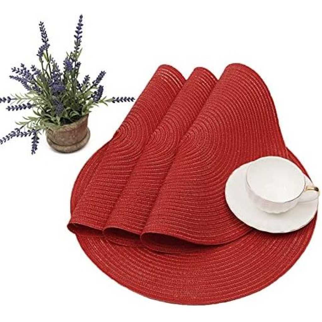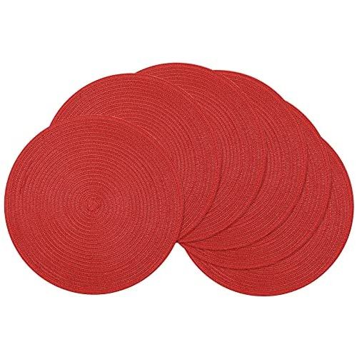 Round Sparkle Placemats Set of 6 Decorative Bling Placemats for Holiday Party Wedding Glitter Table Mats Put a modern twist to your classic wooden dining tables with Decozen Table mats. The mats feature a flower shape which is intricately designed with line pattern and finished in a plastic tone. The shade of the placemats upgrades the boring table setting and lights up its appeal. Although it is not recommended that cookware taken directly from the oven is placed on the mats, they are heat resistant up to 158°F. The pressed PVC composition of these dining table mats also means these mats can be easily wiped clean with a damp cloth and prevent scratches and stains on the table top. Key Features: Polyproplene and Cotton Material: Polypropylene and Cotton. 15 inch across, large enough for any plate or bowl. Protect and dress up your tables. Fit rectangular, round and oval tables. Package includes 6 pcs. Fit almost any kitchen or dining room decoration. Great for everyday use inside or outside. Roll them up or stack them flat for storage. Easy to clean: Wipe clean with damp cloth. Hand wash in cold soap water and air dry. Use Shacos round placemats for birthdays, Christmas, housewarming, holiday, parties, family gatherings, weddings, showers, and more.