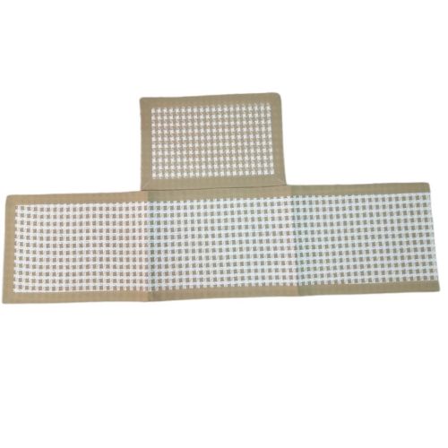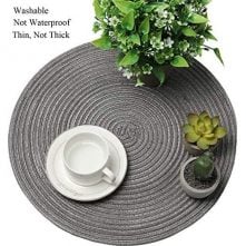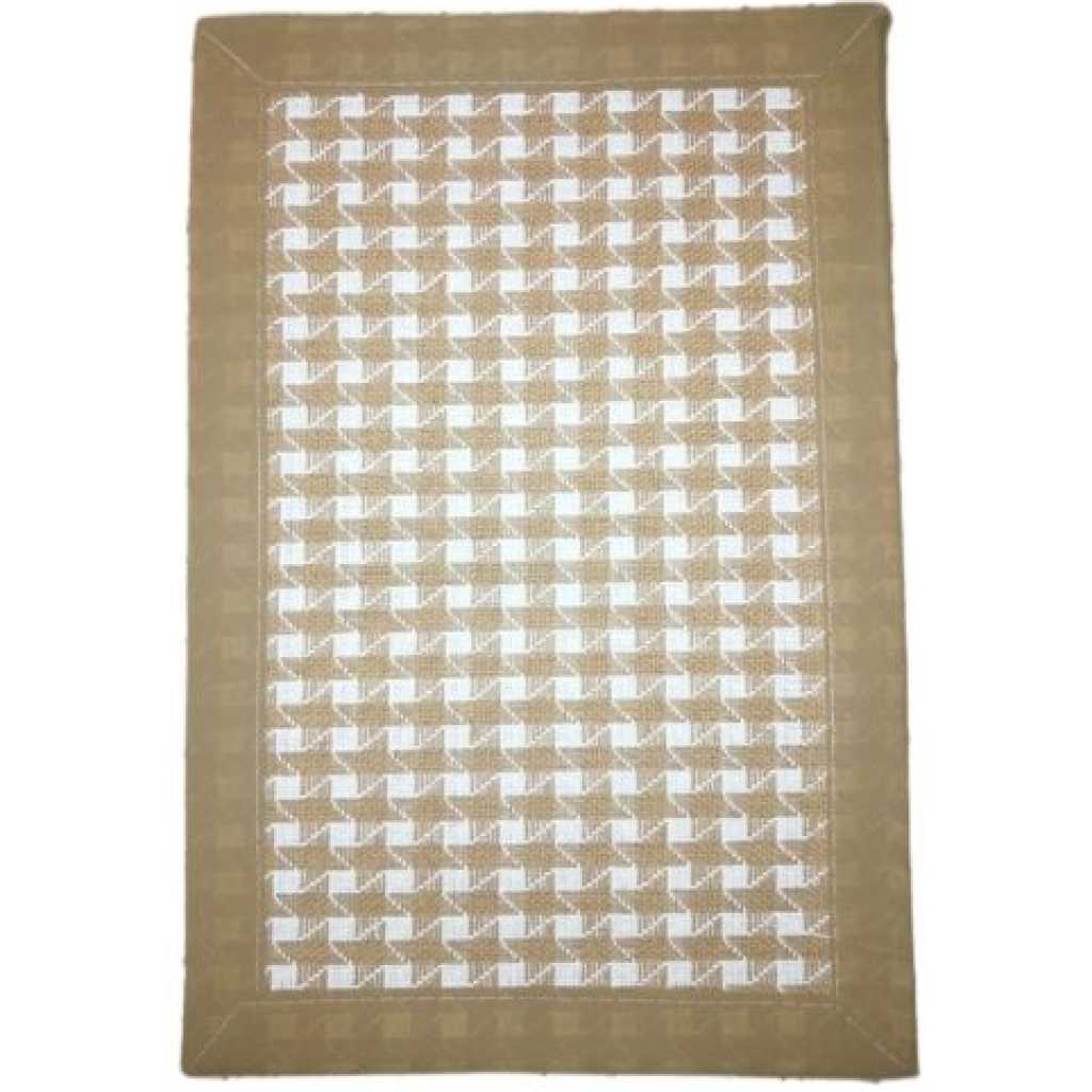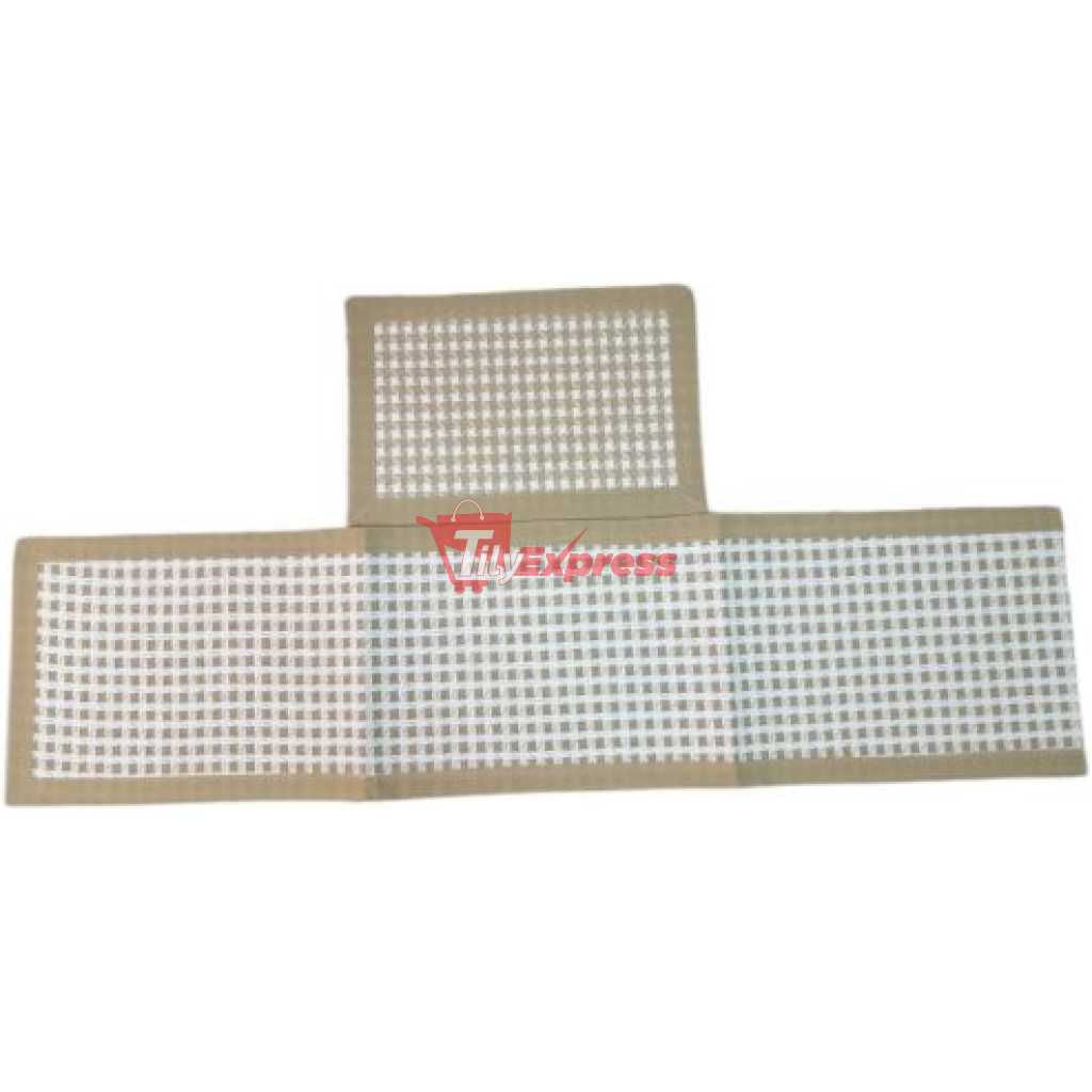 6 Square Decorative Placemats Table Mats And 1 Table Runner – Cream. For Holiday Party Wedding Glitter Table MatsPut a modern twist to your classic wooden dining tables with Decozen Table mats. The mats feature a flower shape which is intricately designed with a line pattern and finished in a plastic tone. The shade of the placemats upgrades the boring table setting and lights up its appeal. Although it is not recommended that cookware taken directly from the oven is placed on the mats, they are heat resistant up to 158°F. The pressed PVC composition of these dining table mats also means these mats can be easily wiped clean with a damp cloth and prevent scratches and stains on the tabletop. Key Features: 6 Square Decorative Placemats Table Mats And 1 Table Runner – Cream. Polypropylene and Cotton Material: Polypropylene and Cotton. 15 inches across, large enough for any plate or bowl. Protect and dress up your tables. Fit rectangular, round, and oval tables. Package includes 6 pcs. Fit almost any kitchen or dining room decoration. Great for everyday use inside or outside. Roll them up or stack them flat for storage. Easy to clean: Wipe clean with a damp cloth. Hand wash in cold soap water and air dry. Use Shacos round placemats for birthdays, Christmas, housewarming, holidays, parties, family gatherings, weddings, showers, and more.