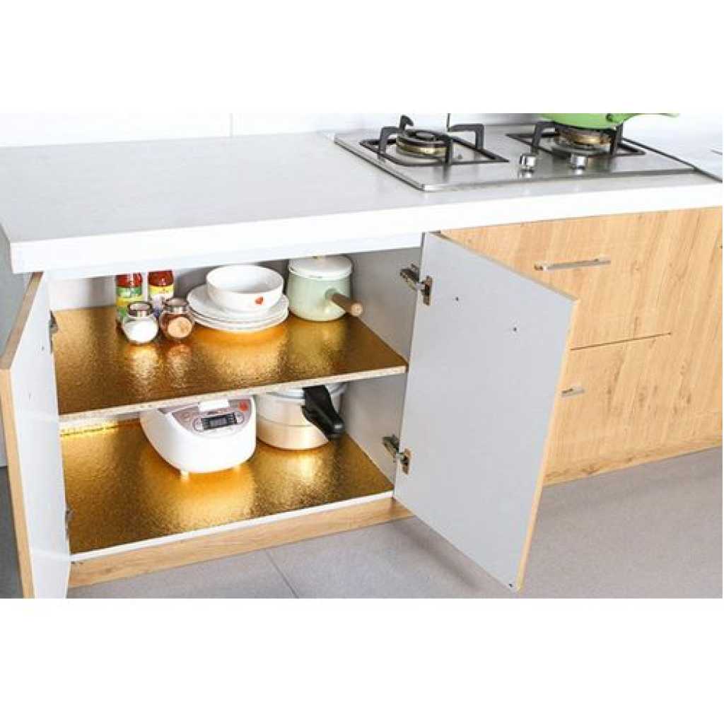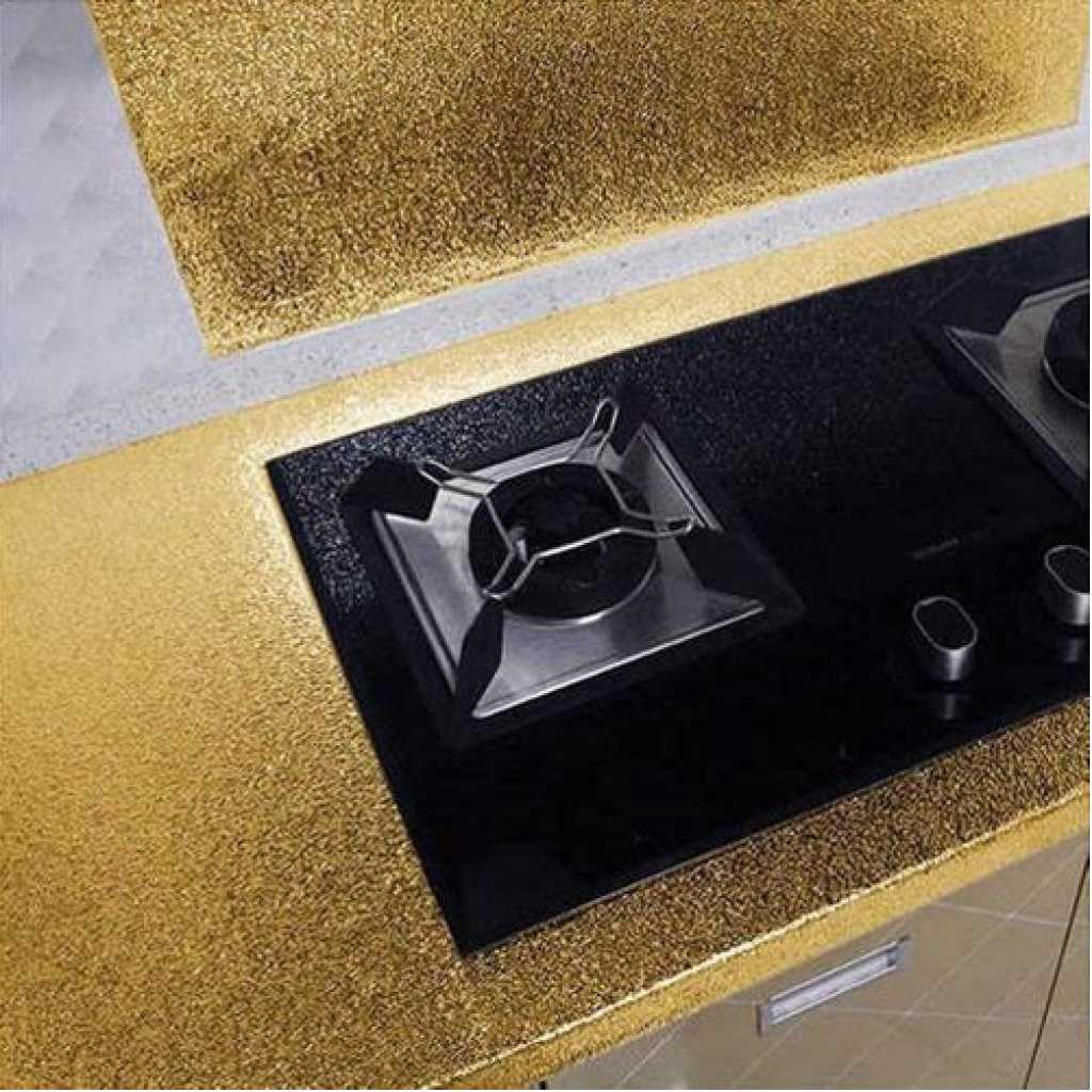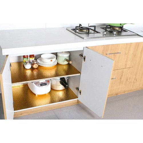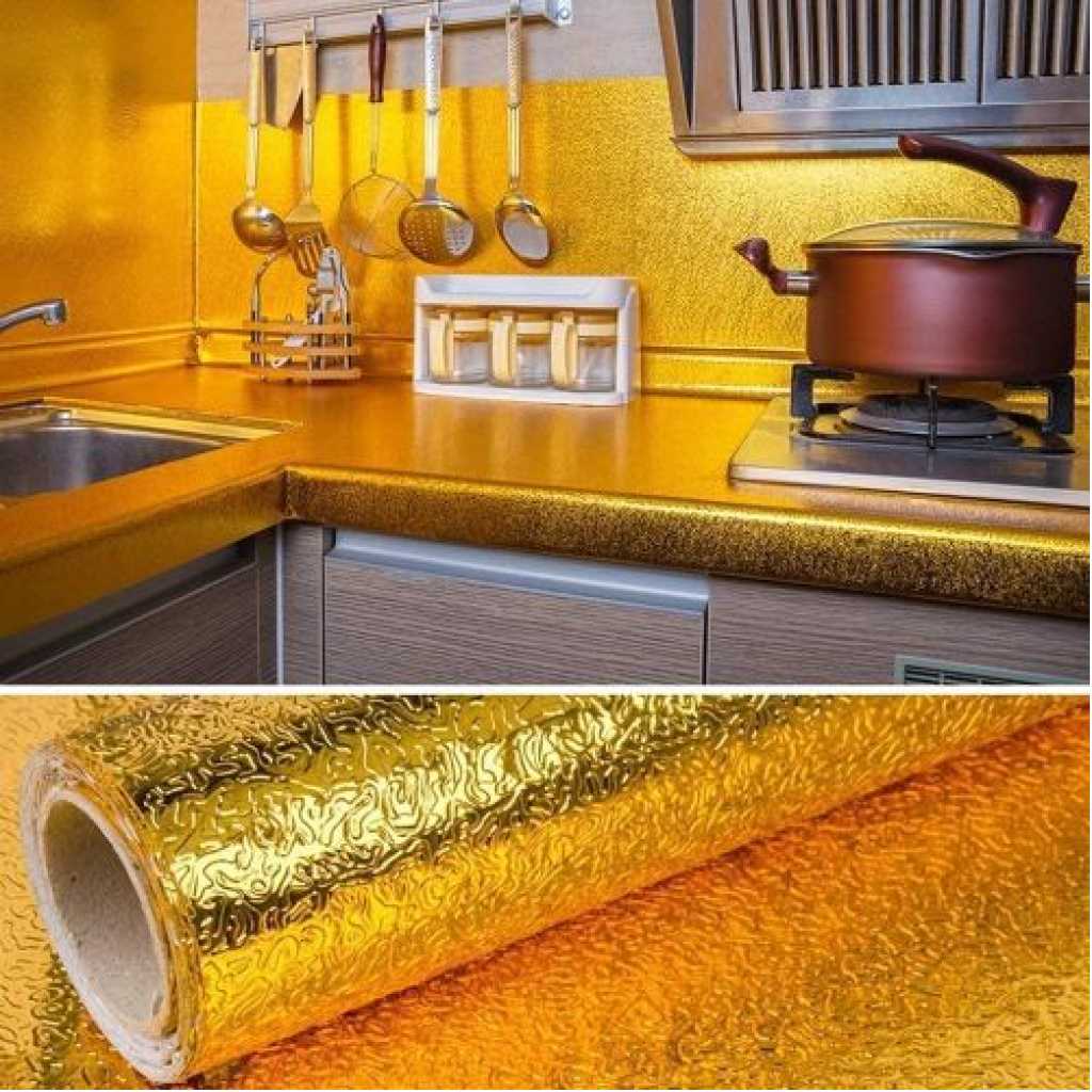 Key Features: foil paper for kitchen is durable & beautiful: Eco-friendly, anti-rust, waterproof, oil-proof, protect your furniture from corrosion and damp. Easy to clean and Cover stains. Decorate and renovate old metallic furniture, make your house look more upscale. Easy to Install: Self-adhesive, just need to peel and stick. There are grid lines behind the wallpaper for you to scissor accurately. Removable, no glue residue. Material: High quality aluminium foil.