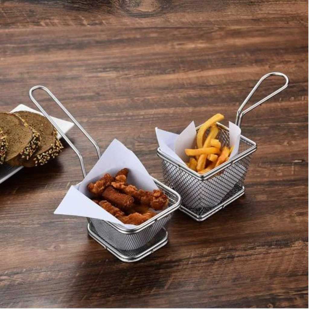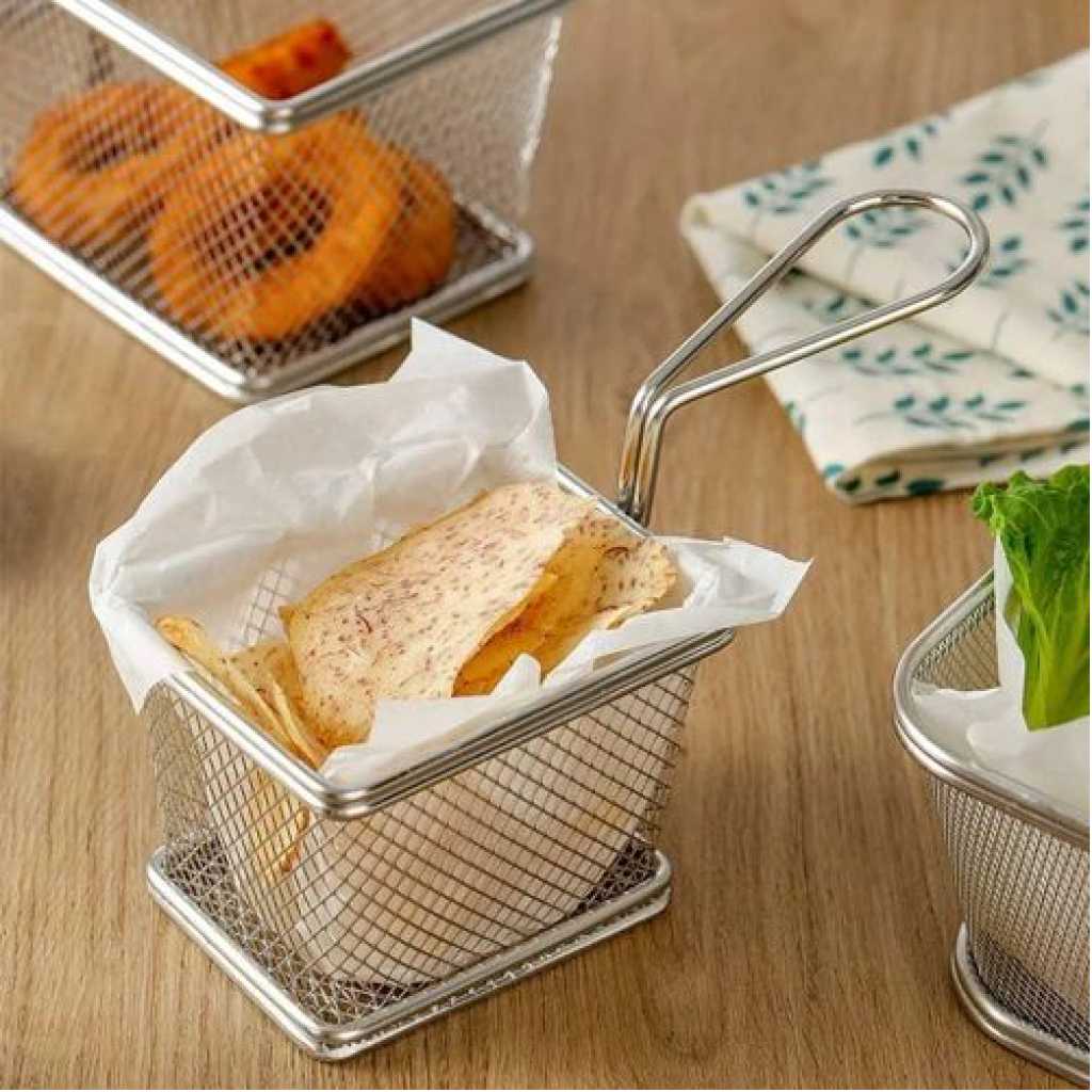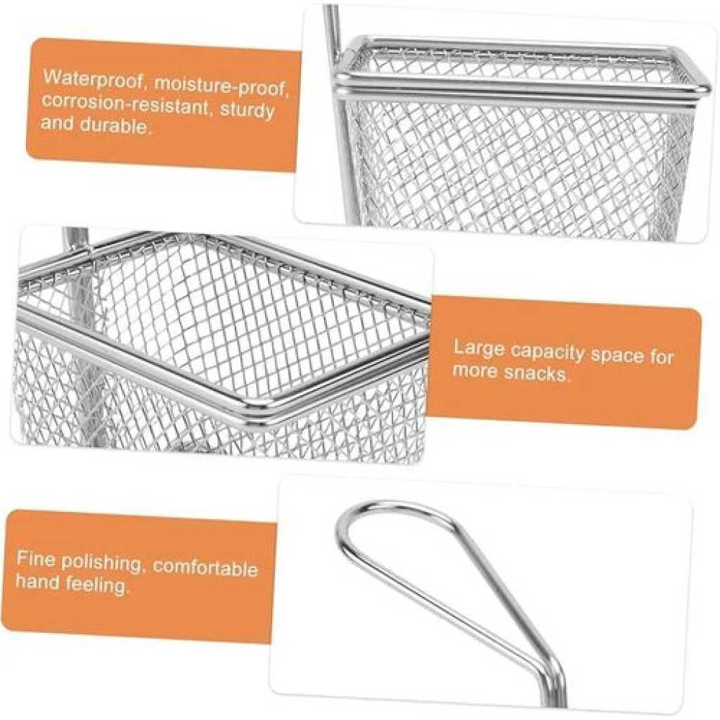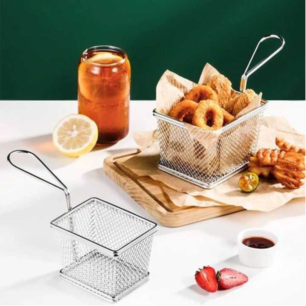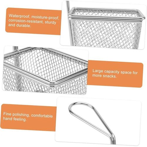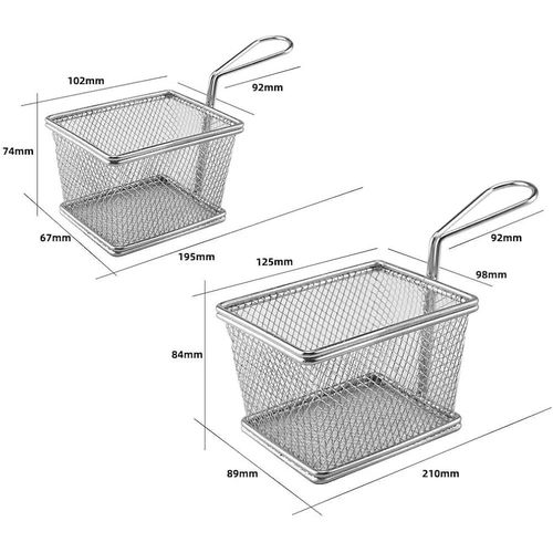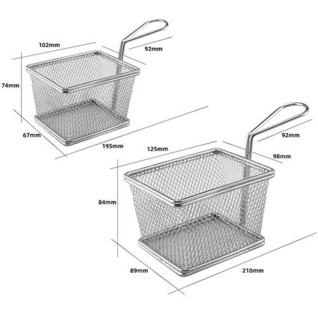 Package Include 2 x frying basket Characteristics -Color: Silver Chip Fry Baskets. -Material: Stainless steel stainless steel frying basket. -Size: About 19.00X8.00X7.20cm / 7.47X3.14X2.83inch metal basket. -Fine polishing, comfortable hand feeling, easy to operate french fry basket. -Quality material, resistance, not easy to rust or fade french fry chips basket. -Reinforced base with a welded handle, easy and safe for holding reusable chips basket. -Simple shape, thick frame, and strong, service life french fries holder. -Large capacity space, more food can be fried at one time mesh fryer basket. Goods Information metal fryer basket It can be for cooking and frying in the kitchen.mini basket The stainless steel material allows it to be directly connected to food safely and is also .fruit strainer It will not rust, bend, crack or weaken easily Stainless steel utensil holder: wide range of applications: suitable for frying all kinds of chips, onion rings, steak, chicken wings, it can be in family cooking, fast food restaurant, barbecue, outdoor camping, Fish flakes food: easy to use: the perfect design of the basket handle makes its to take out, make sure you dont get burned, the best fry basket belongs to everyones kitchen, regardless of cooking skills. Cooking : stainless steel fry basket fried chicken basket, this basket is – resistant, which is and maintain. Stainless steel basket: reliable service: we offer you reliable after- sales service. if you have any questions about our products or any problems with your packages, please feel free to contact us. Mini strainer: fine polishing, comfortable hand feeling, easy to operate.