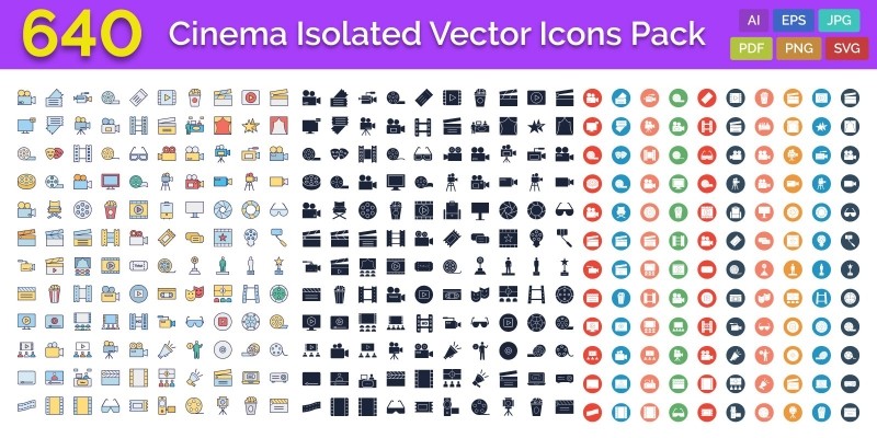 640 Cinema Isolated Vector Icons Pack. 640 Cinema Isolated Vector Icons Pack