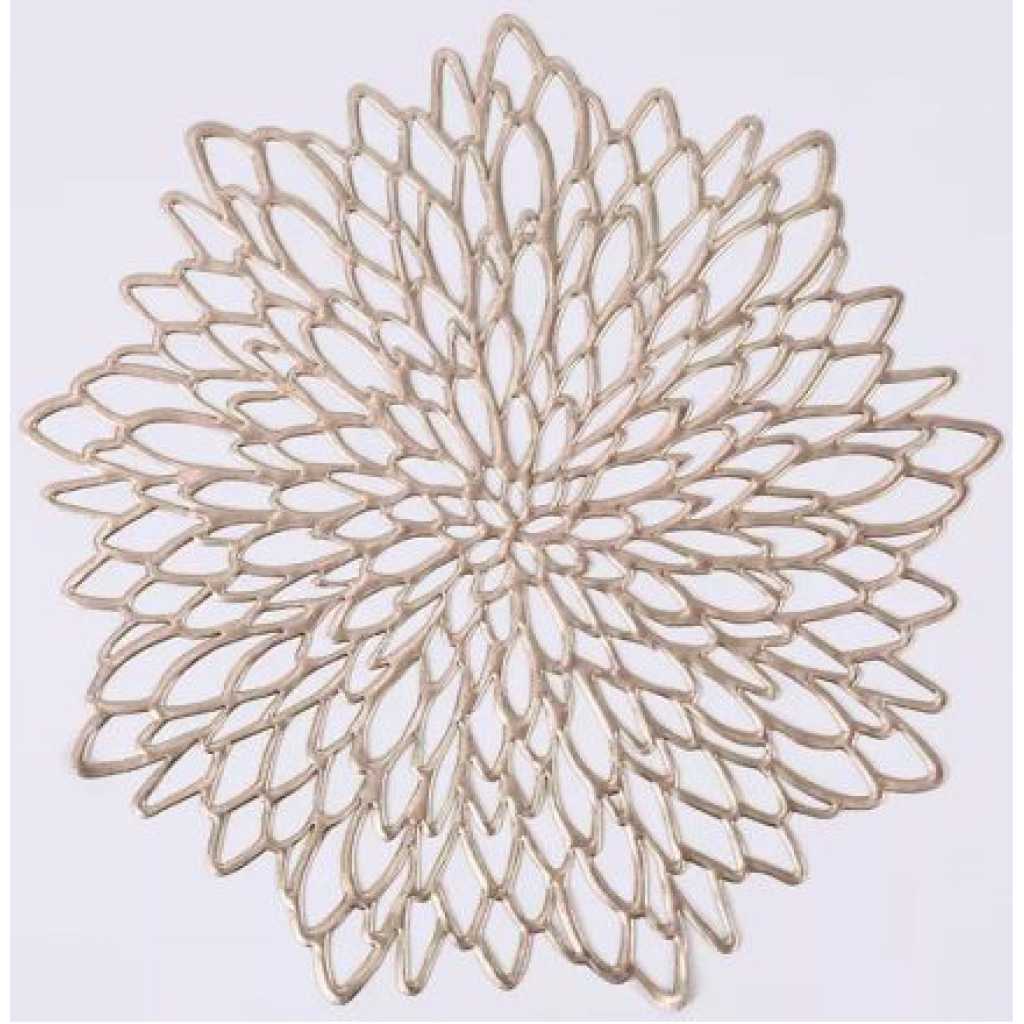 6PC Placemats Leaf Flower Place Mats Dining Hollowed Table Mats-Multi-colours. Leaf Placemats Set of 6 Decorative Bling Placemats for Holiday Party Wedding Glitter Table Mats Put a modern twist to your classic wooden dining tables with Decozen Table mats. The mats feature a leaf shape which is intricately designed with a line pattern and finished in a plastic tone. The shade of the placemats upgrades the boring table setting and lights up its appeal. Although it is not recommended that cookware taken directly from the oven is placed on the mats, they are heat resistant up to 158°F. The pressed PVC composition of these dining table mats also means these mats can be easily wiped clean with a damp cloth and prevent scratches and stains on the tabletop.