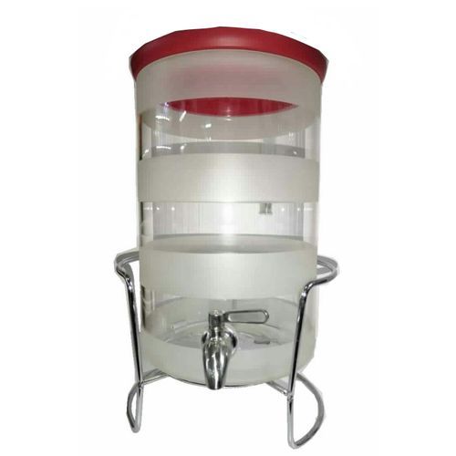 This 7.5 litre beverage dispenser comes with a plastic cover. The server has an easy to remove top for quick liquid replenishment. This single beverage dispenser has a removable stand for easy cleaning. The containers are perfect for dispensing any types of juices. This single drink dispenser on metal stand will definitely make a great centerpiece and enhance your event, party etc.. beverage drink dispenser with a tin screw off lid with a chromed tone easy to pull non-drip spigot.