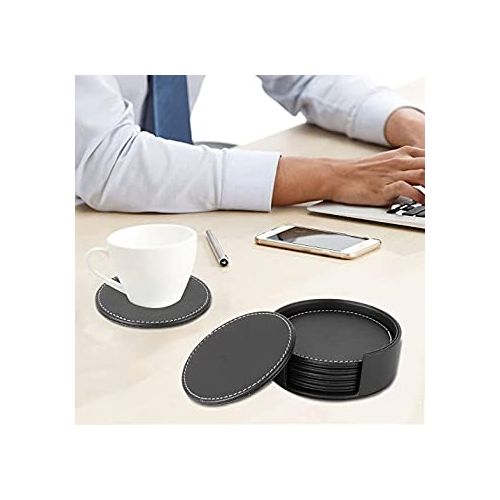 7 Piece Leather Drink Coasters Round Cup Mat Pad for Home And Kitchen – Black CARLWAY leather coasters are made of premium PU leather with exquisite craftsmanship. Our drink coaster set makes a great gift for Christmas, parties, and celebrations, or as a gift for holidays, birthday parties, or festivals – Halloween, Thanksgiving, New Year – An ideal gift for your loved ones on any occasion! CARLWAY leather coasters can be widely used. These round drink coasters with holders can be used for home, office, bar, coffee, and pub, but also can be used as placemats, which adds decoration to your table.
